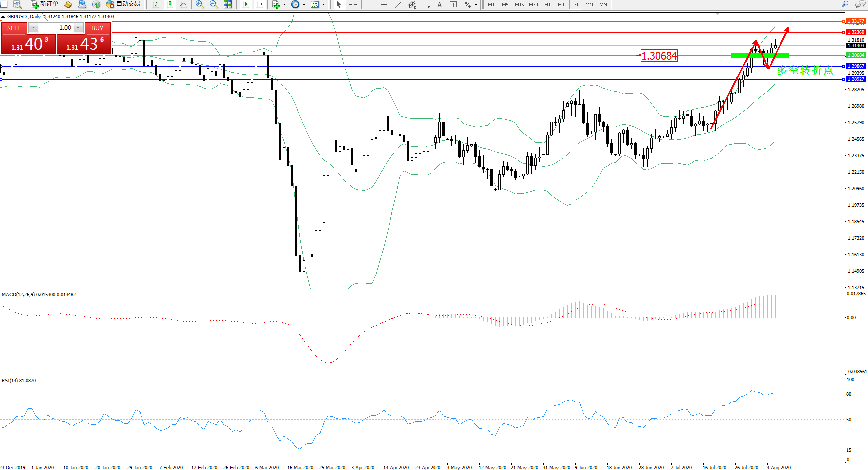 交易策略:1.30684上方看涨,目标1.32360、1.33177