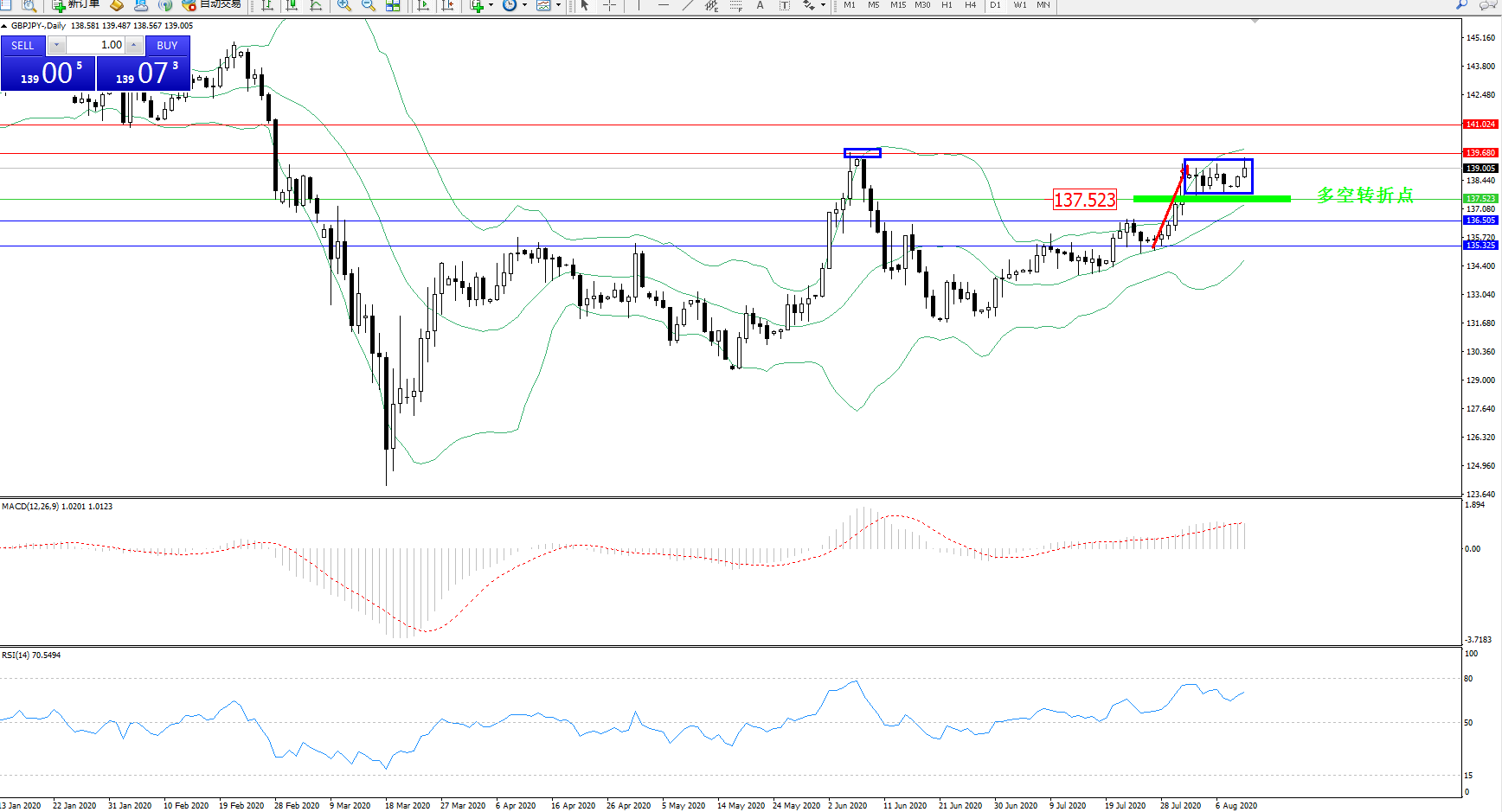 英镑兑日圆弱势上移至139.004附近徘徊,英国银行业遭受疫情和“脱欧”双重夹击;近日,英国主要银行陆续发布上半年财报。数据显示,受疫情影响,英国银行业利润大幅下滑,预期信贷损失拨备骤增;除疫情因素外,英国银行业还面临“脱欧”风险,行业前景存在巨大不确定性。英国银行业的不良贷款拨备较其他欧洲银行偏高,主要因为英国受疫情冲击严重,而且英国和欧盟的“脱欧”后自贸关系谈判尚无结果。经合组织预测,英国经济今年将下滑11.5%,欧元区将下滑9.1%。英国央行则预测,在不暴发二次疫情以及英欧达成自贸协议的前提下,英国经济今年将萎缩9.5%,至少要到2021年底才能回到疫情前水平。