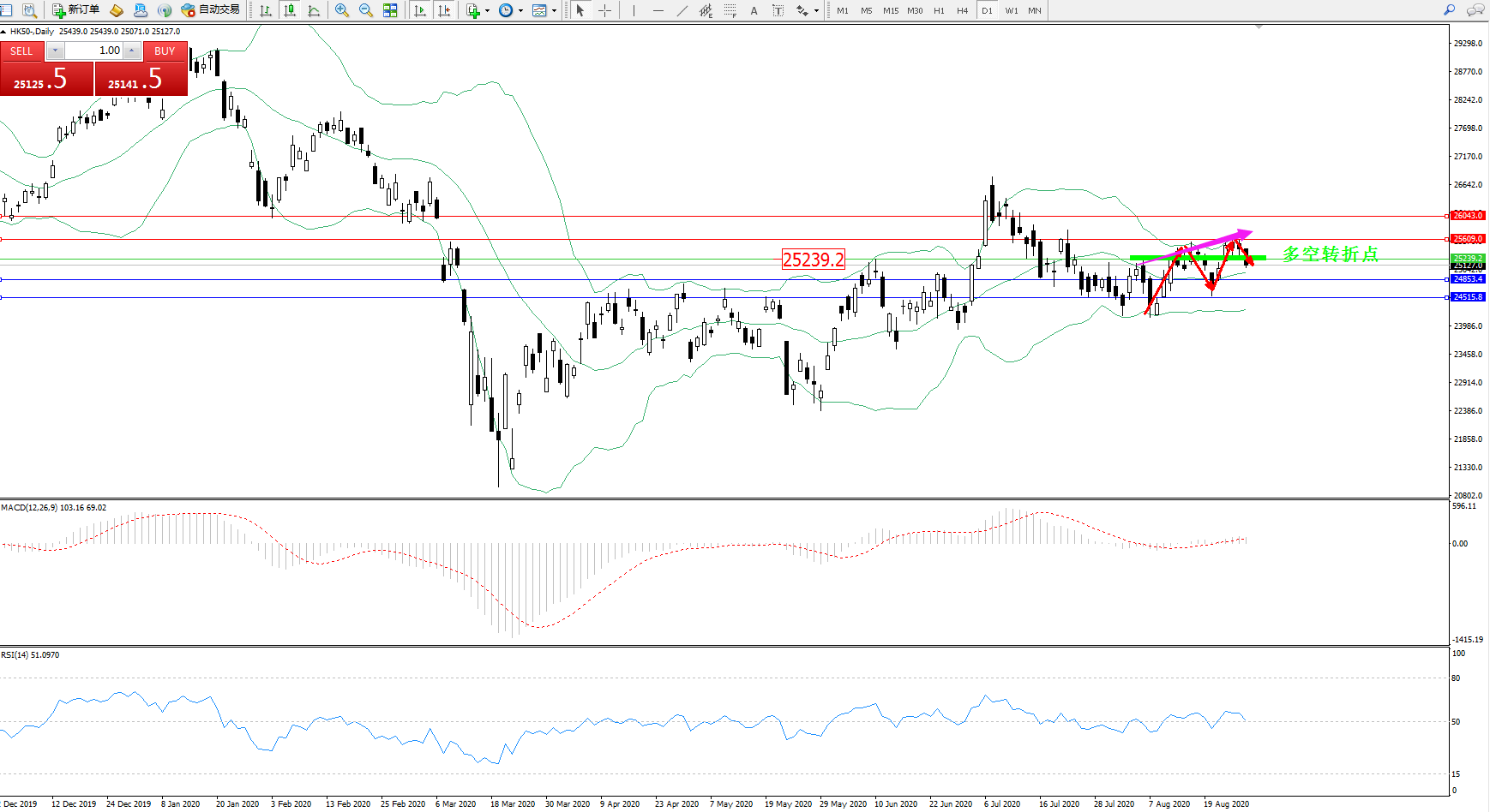 香港恒生指数8月27日(周四)收盘下跌210.64点,跌幅0.83%,报25281.15点;港股三大指数均收跌,餐饮股全日强势领涨,海底捞大涨近9%创新高;恒生科技成份股延续强势,众安在线飙涨近23%,小米大涨逾11%逼近新高,美团升近5%续创新高。今日南下资金净流入54.82亿港元,大市成交额为1506亿港元。香港特区政府卫生署卫生防护中心传染病处主任张竹君称,截至今天凌晨0时,香港新增21例新冠肺炎确诊病例,其中有3例为输入性病例,18例为本地确诊病例,累计病例达4756例。