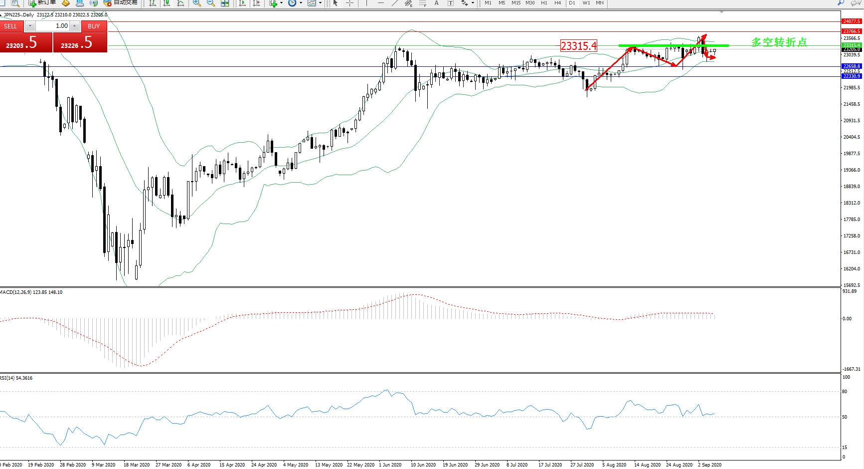 日经225指数9月7日(周一)收盘下跌113.93点,跌幅0.49%,报23091.50点。日本国内的新冠疫情仍在持续蔓延,尽管政府新冠对策分科会认为第二波传染扩大已经在7月底度过最高峰,开始呈现缓慢下降趋势,但在新冠持续蔓延下,日本国内部分专家担心进入11月流感季节后,日本将面临新冠和流感同时流行的局面。如何防控疫情将成为新政府成立后的首要课题。在经济上,第二季度日本国内生产总值(GDP)比第一季度下降7.8%,换算成年率为下降27.8%,超过2009年一季度雷曼危机后的年率下滑17.8%,创下史上最差纪录。在最差经济数据之下,日本国内失业率上升,企业倒闭增加,经济面临疫情防控和复苏的两难境地。