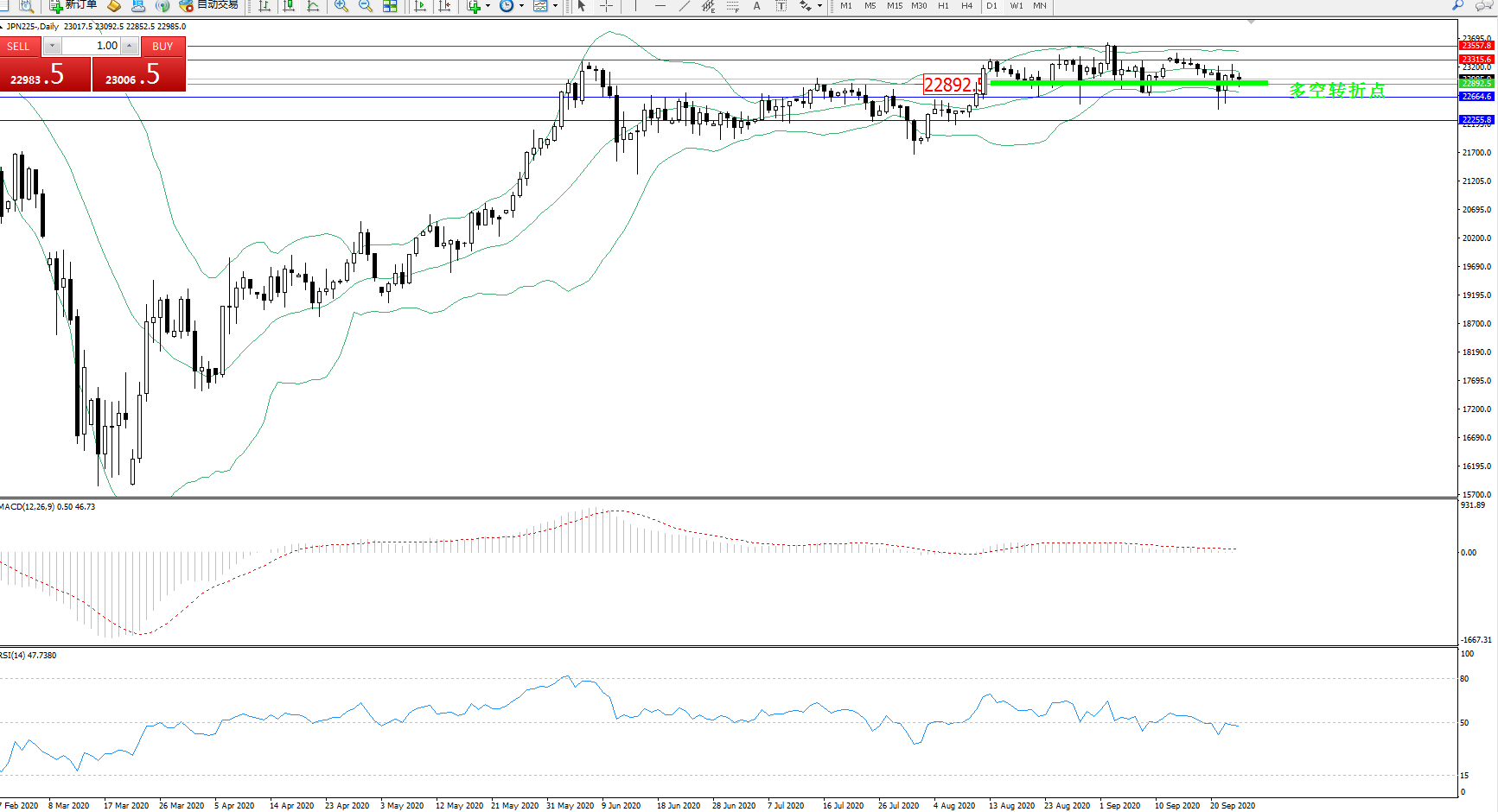 日经225指数9月24日(周四)收盘下跌251.49点,跌幅1.08%,报23095.00点。美元指数创两个月新高,美元强势如虹,对其他资产均构成一定压力,商品货币重挫,亚洲股市大跌,市场风险偏好骤降,日本央行会议纪要显示:在危机中,企业需要财政政策;少数委员表示,必须对海外经济复苏的步伐保持谨慎态度;与政府合作进行结构性改革至关重要;必须警惕日本和其他国家疫情反弹的风险;如果疫情持续下去,可能会导致失业,影响家庭收入和支出;少数委员表示,疫情对经济造成的长期损害可能导致一些企业的偿付能力出现问题,影响金融体系的稳定性。据外媒,23日一家调查公司的数据报显示,日本1月至8月停业或解散的企业数量达35816家,同比增长23.9%。其中,居首位的是餐饮、酒店宾馆等服务行业。之后依次为建筑业、零售业和制造业。媒体称,如果维持这一增长速度,日本全年将有超过5.3万家企业停业或解散。