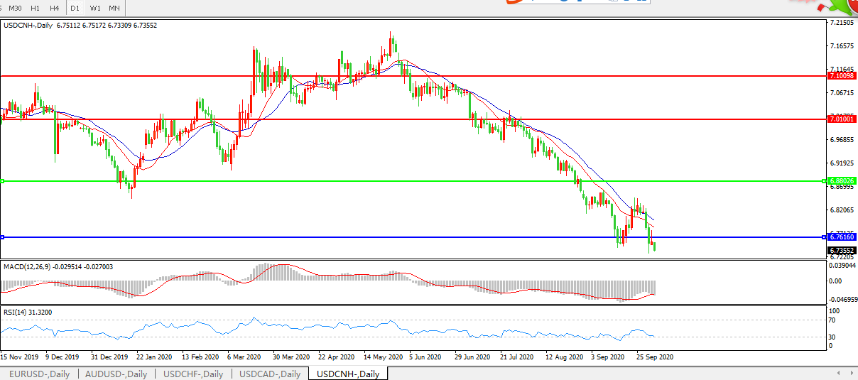 交易策略: 在6.8800之下,看跌,目标价位为6.7615,然后为6.5000。