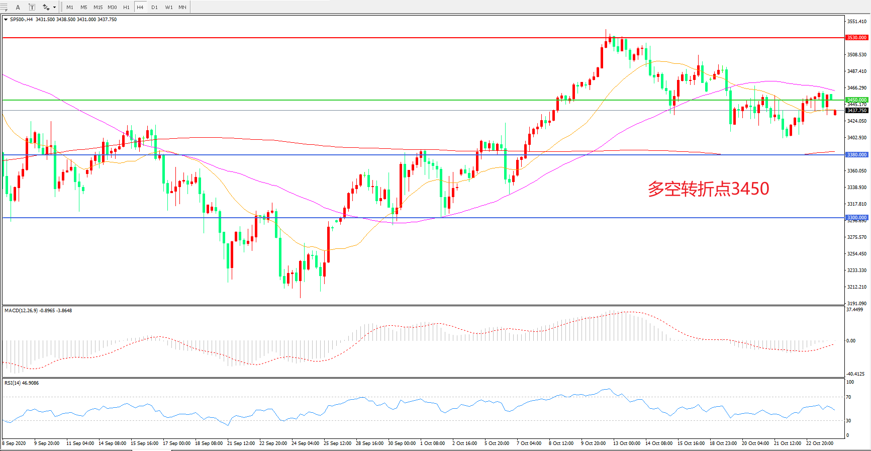多空转折点:3450.00
