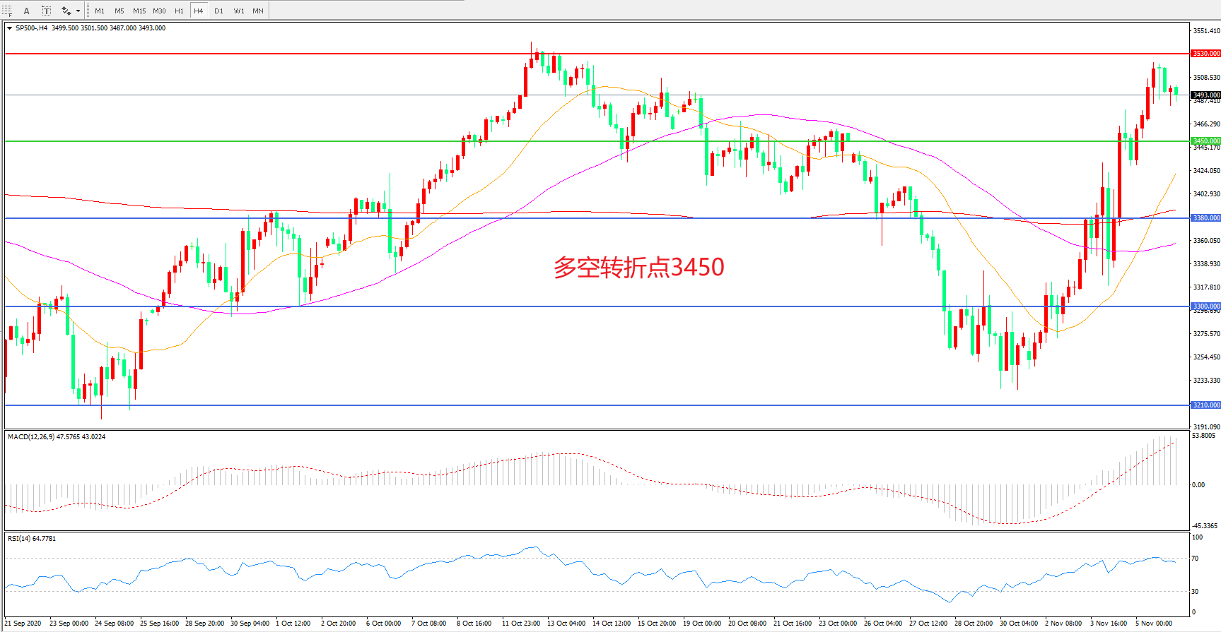 周四(11月5日),美国选情仍在胶着,内华达州计票成为市场焦点,但美股却选择提前狂欢,标普500指数收涨2.20%,报3496.00点,创6月5日以来最大收盘涨幅,并创10月23日以来收盘新高。美联储选择按兵不动,帮助市场营造极度宽松的货币环境,股市整体陷入狂欢。