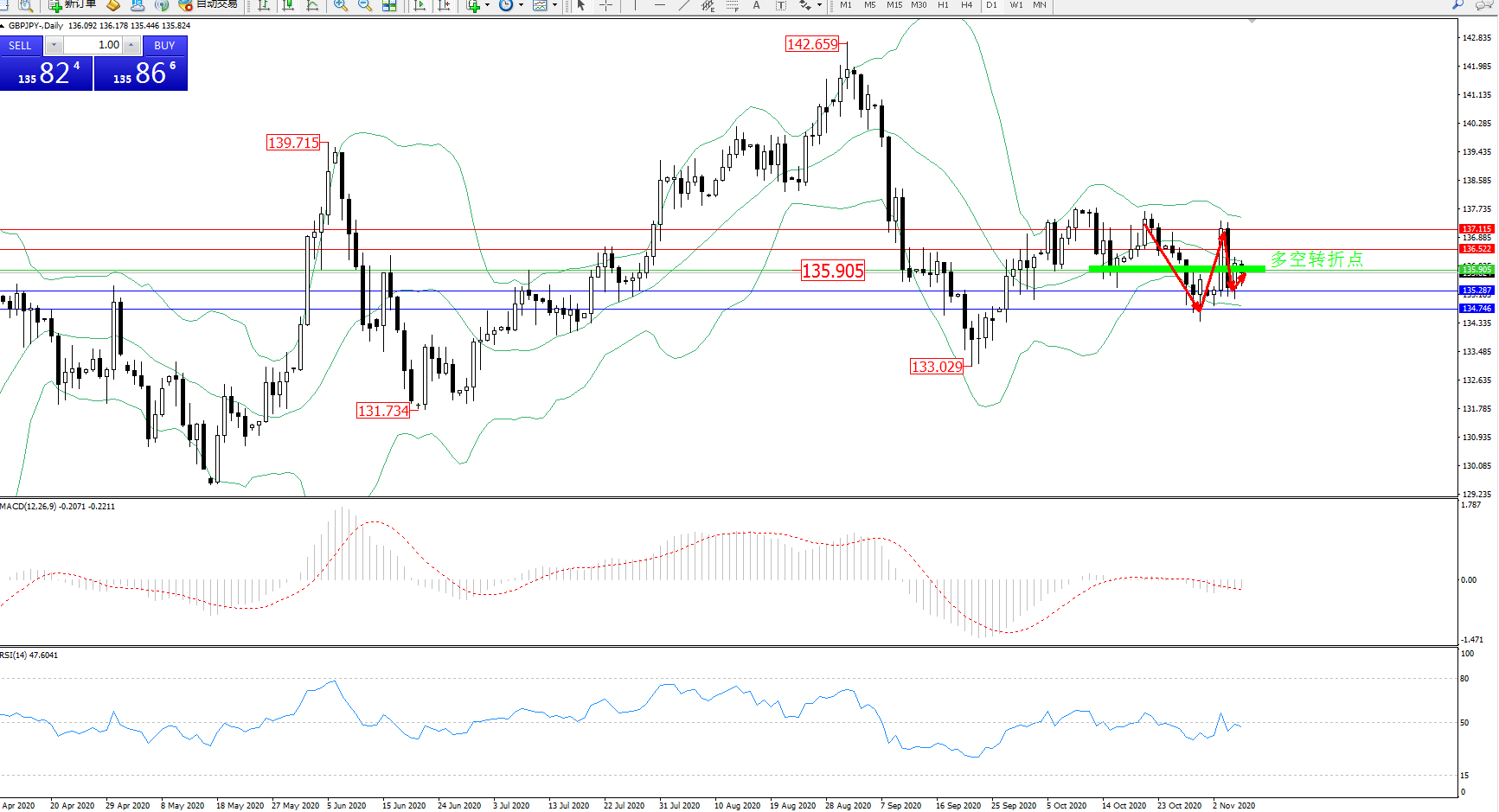 多空转折点:135.905