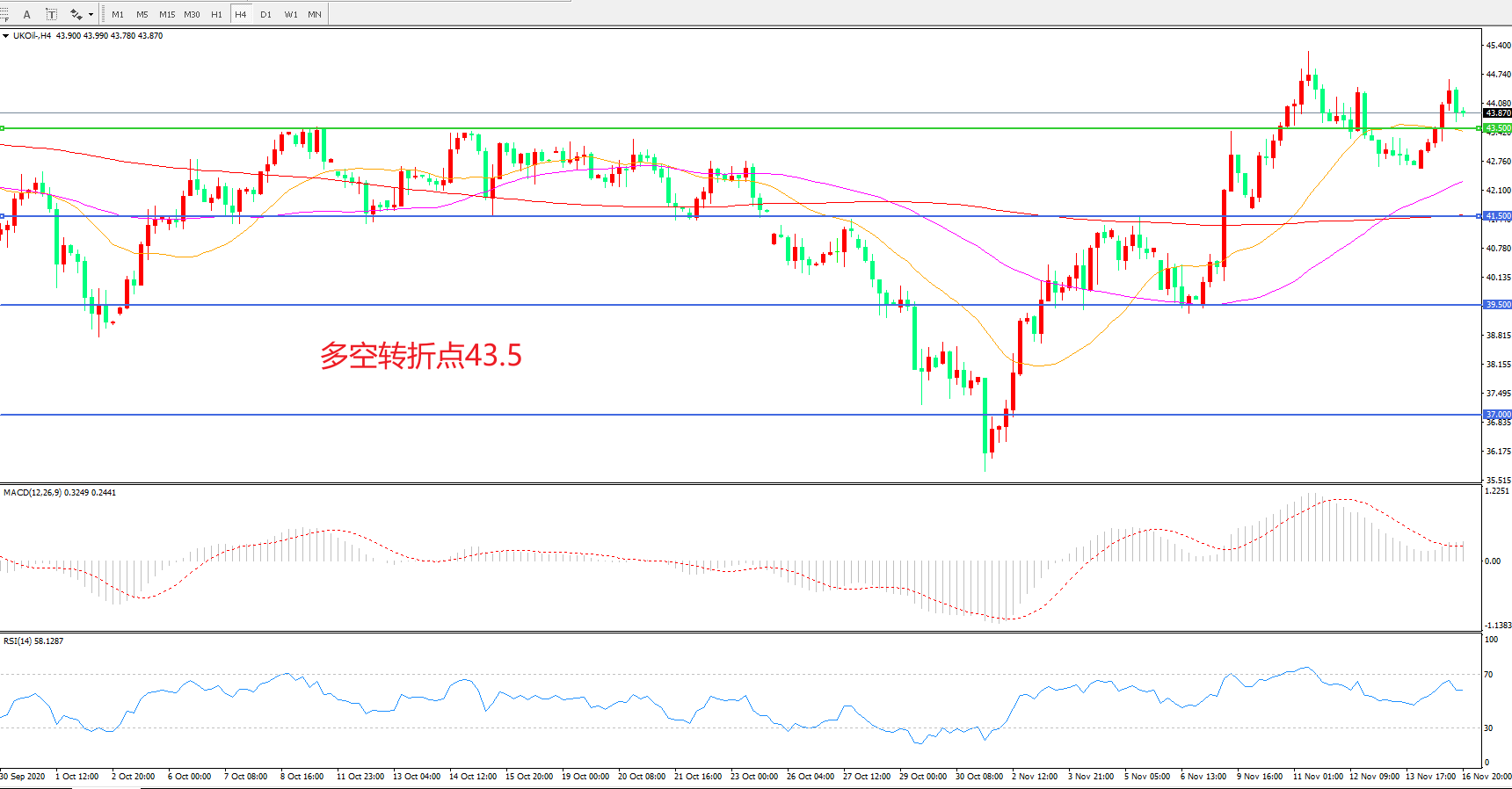 多空转折点:43.50