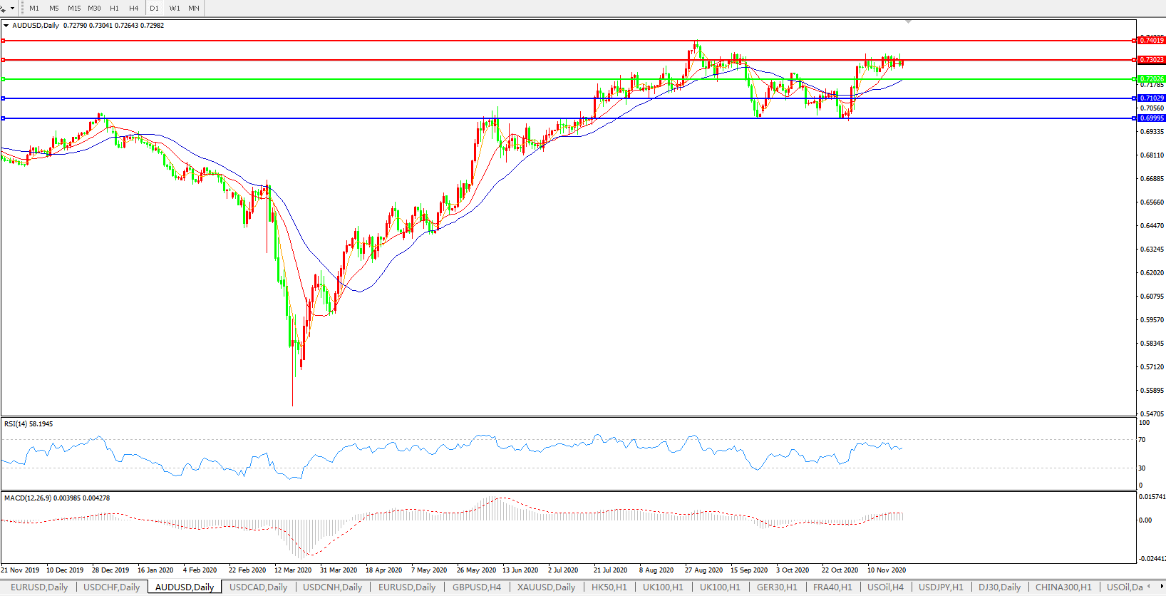 交易策略:0.7200上方看涨,目标0.7300、0.7400