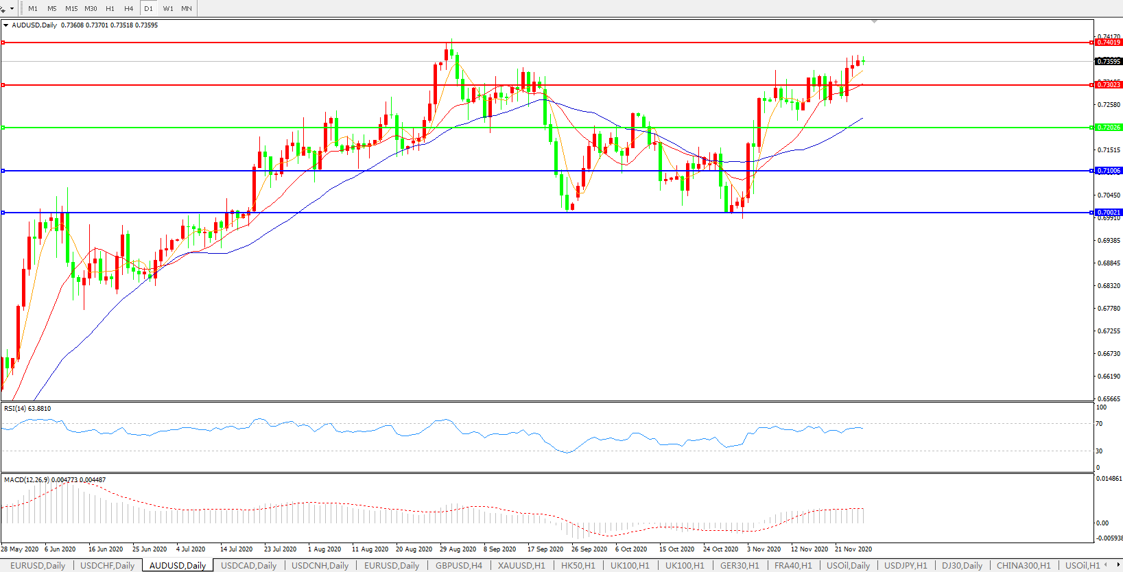 交易策略:0.7200上方看涨,目标0.7300、0.7400