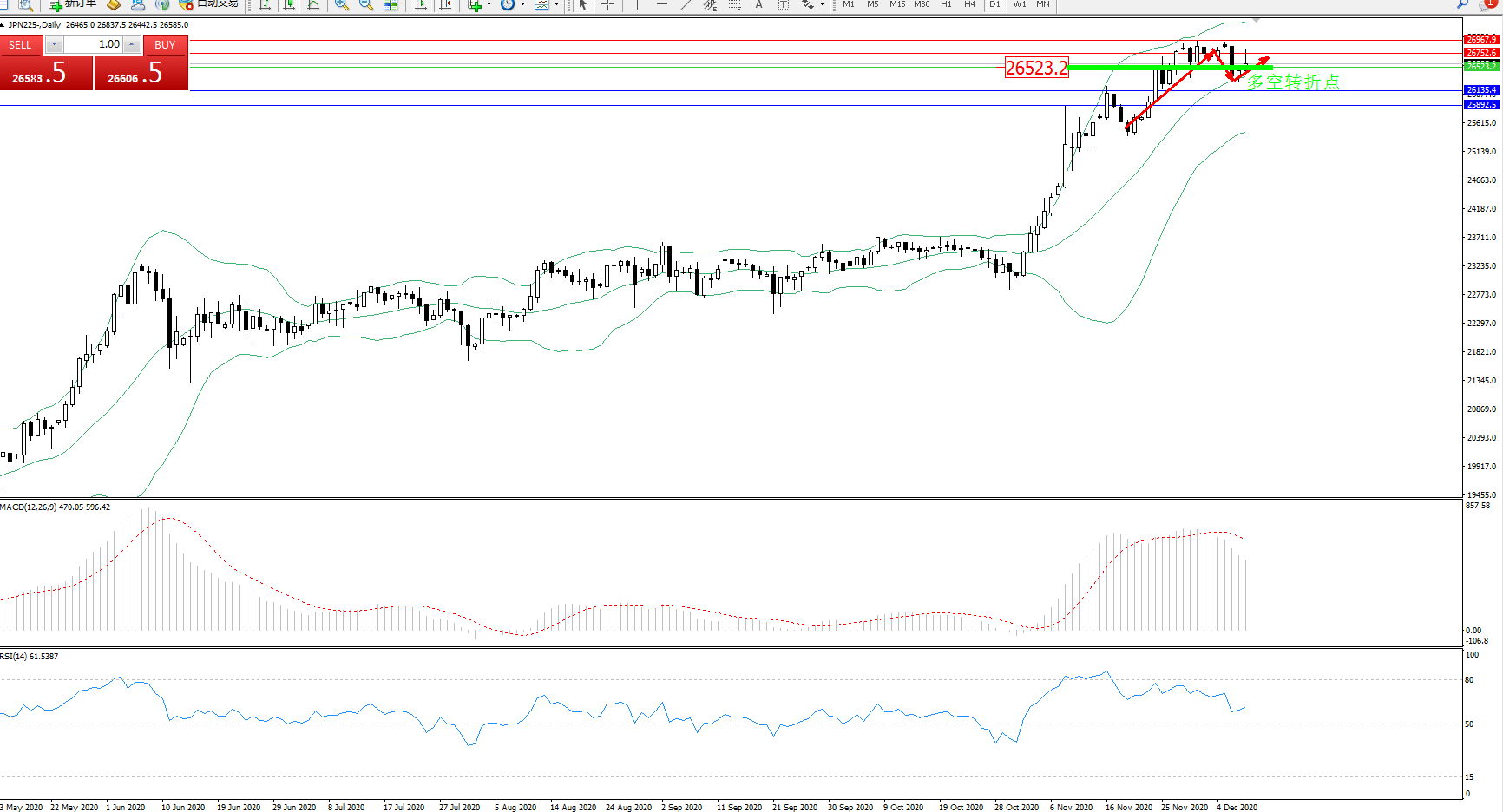 交易策略:26523上方看涨,目标26752、26967