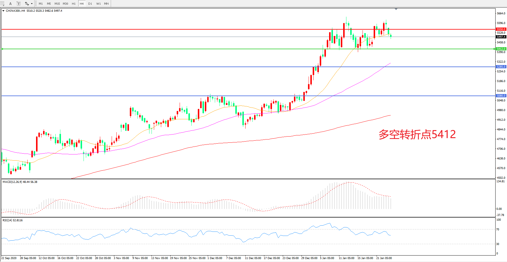 多空转折点:5412.00