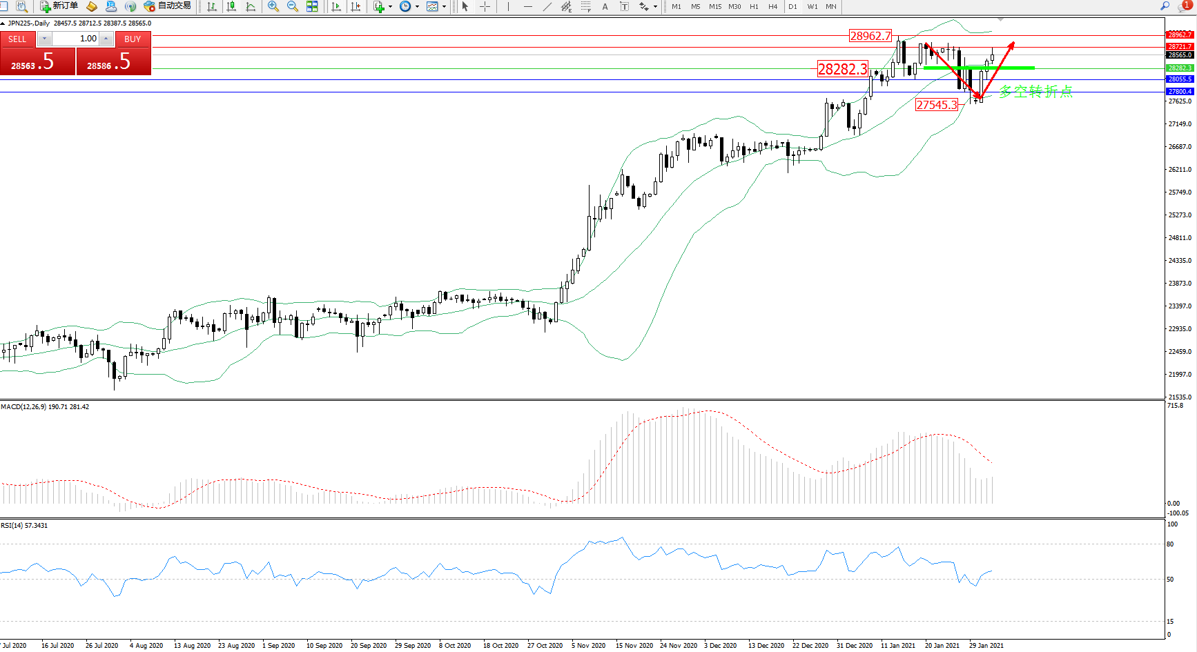 日经225指数2月3日(周三)收盘上涨271.83点,涨幅0.96%,报28634.00点。日本东京新增676例新冠肺炎确诊病例。日本央行副行长若田部昌澄:收益率曲线控制(YCC)框架是正确的方向。需要继续坚定地宽松以实现物价目标。日本央行希望在3月评估可以采取哪些措施来应对我们目前正经历的疫情冲击。如果实际利率飙升,日本央行必须采取行动。根据日本央行的承诺,如果有需要日本央行必须准备进一步降低名义利率。日本央行必须时刻思考如何最好地应对经济的快速变化和下一次危机。(当被问及日本央行3月的评估是否会考虑缓解负利率政策的弊端时)无可置评。不同意日本央行应该放弃2%的通胀目标的观点。如果不采取措施缓解冲击,延长紧急状态可能会损害消费。日本央行将会评估为什么没有达成通胀目标。