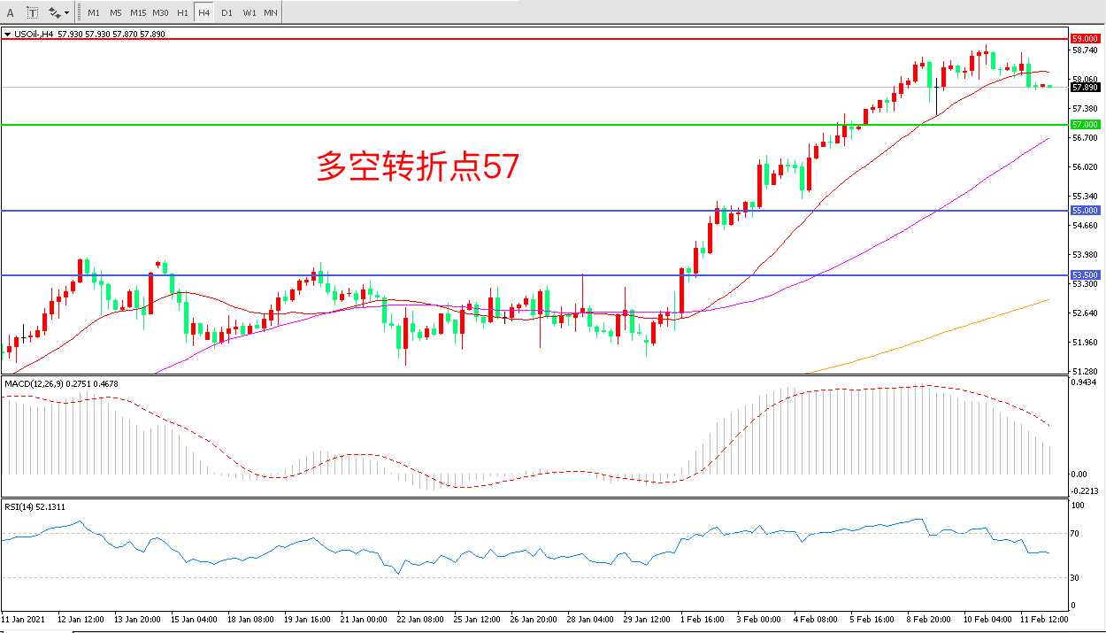 交易策略:在57.00之上看涨,目标59.00 63.00