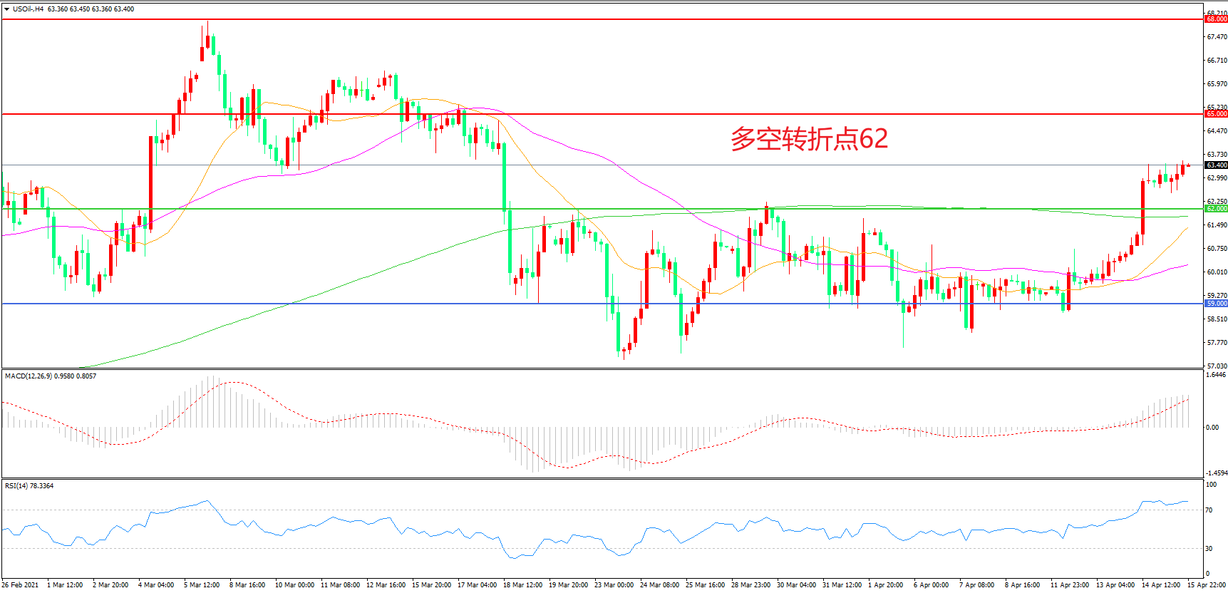 交易策略:在62.00之上看涨,目标65.00 68.00