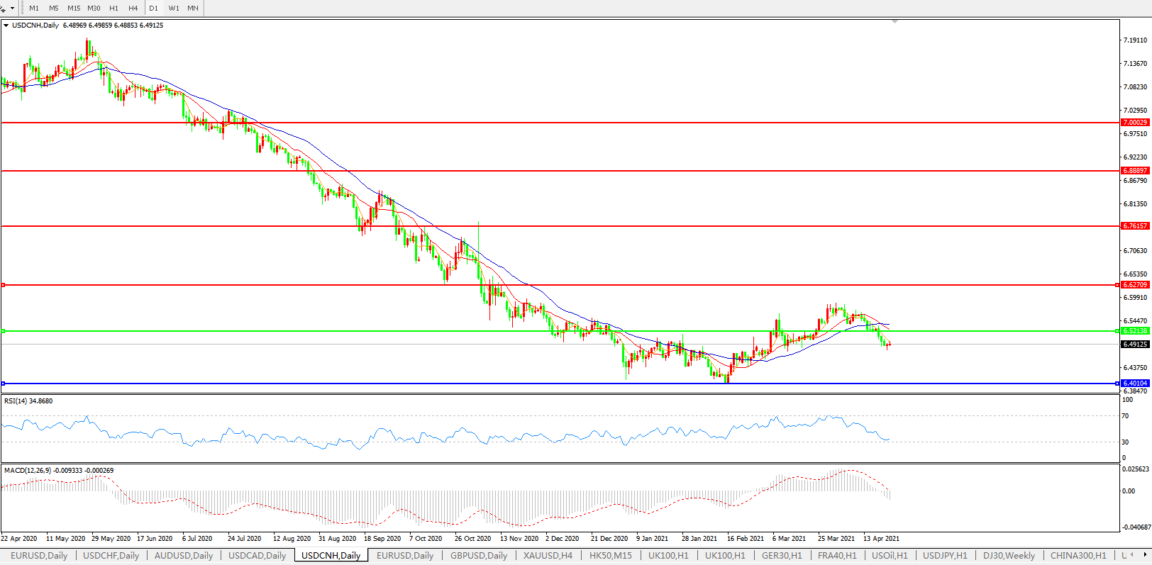 美元兑人民币USDCNH    日线图: