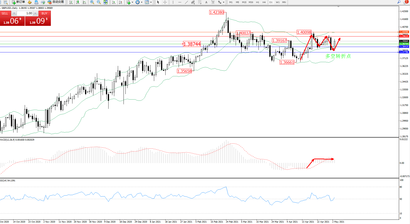 交易策略:1.38744上方看涨,目标1.39610、1.40098