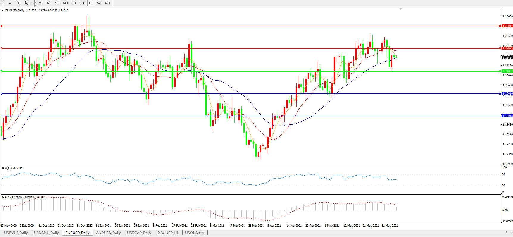 交易策略:1.2100上方看涨,目标1.2200、1.2300
