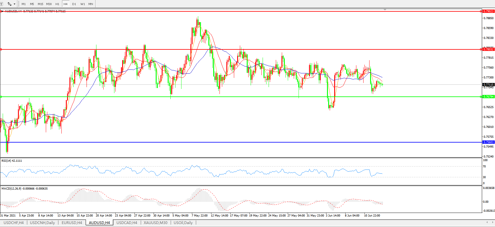 备选策略:0.7680下方看跌,目标0.7560、0.7400