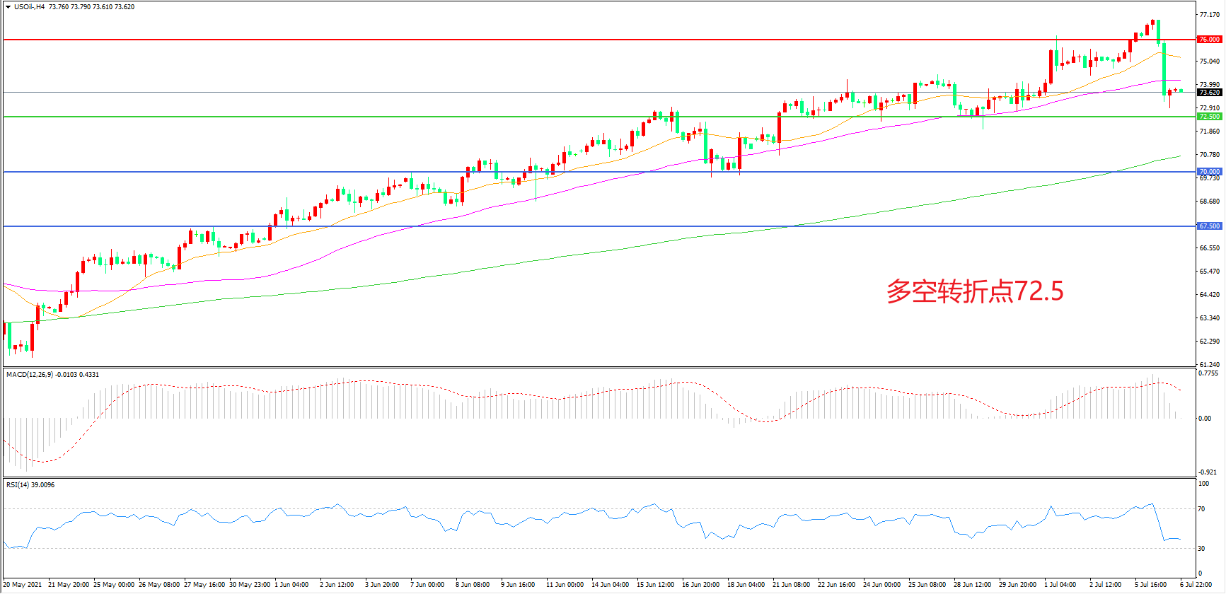 周二(7月6日),OPEC+会议不欢而散,沙特和阿联酋之间的矛盾达到了难以调和的局面,八月份没有增产成为短暂的事实,但谁也不知道OPEC之间的内部矛盾是否会让这一团体产生更大的利空因素,美国WTI原油快速下行,收报73.31美元/桶。作为沙特曾经亲密的盟友,阿联酋突然提出反对意见,某种程度上反映了海湾国家内部在石油市场的竞争正在加剧,考虑到阿联酋和沙特之间关系的恶化,OPEC成员国之间的摩擦可能会威胁到该组织长期团结和稳定油价的能力。