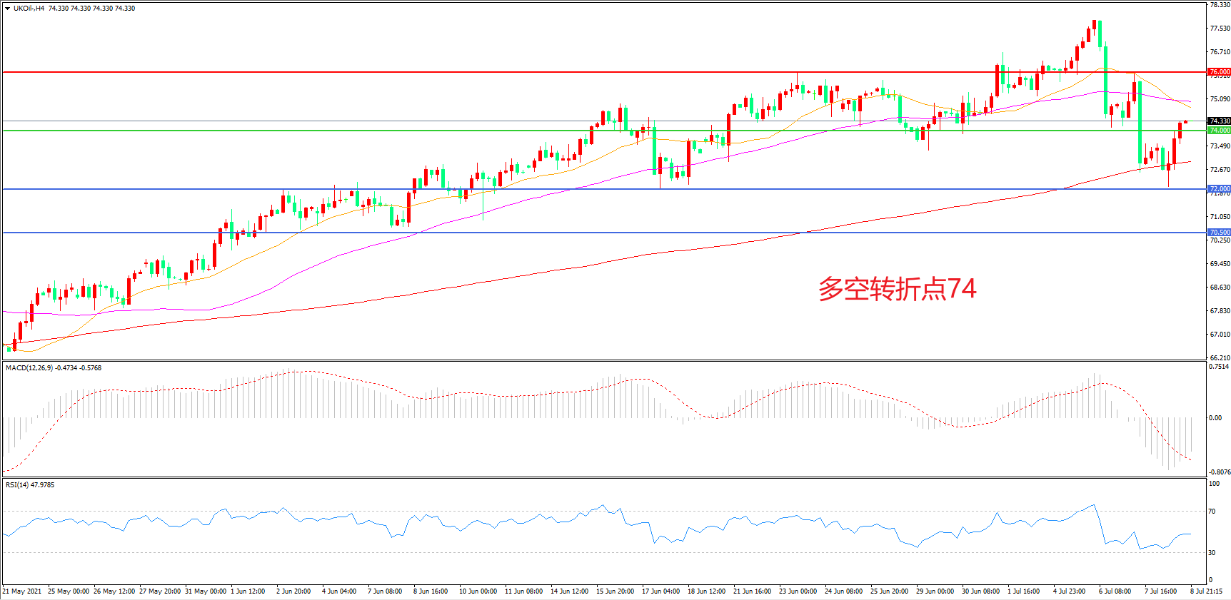 交易策略:在74.00之上看涨,目标76.00 78.50