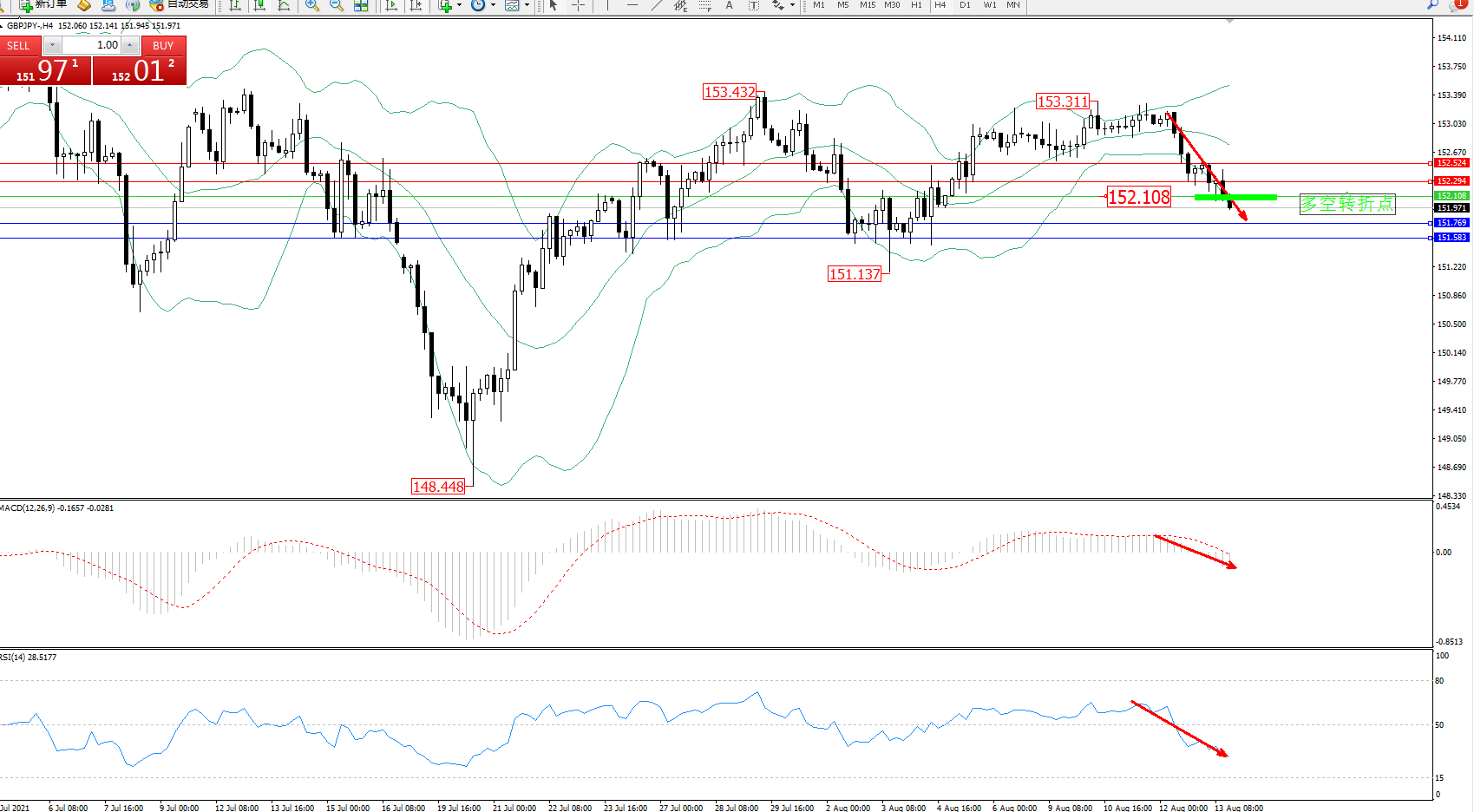 技术点评:高位空头动力受压延续布林带指标下轨附近节点震荡下行,布林带指标呈张口走势中,短期或持续向下移动,MACD指标空头动力持续震荡下破0轴线进入空头区域下行,RSI指标处于50均衡线下方空头区域不断下移中;