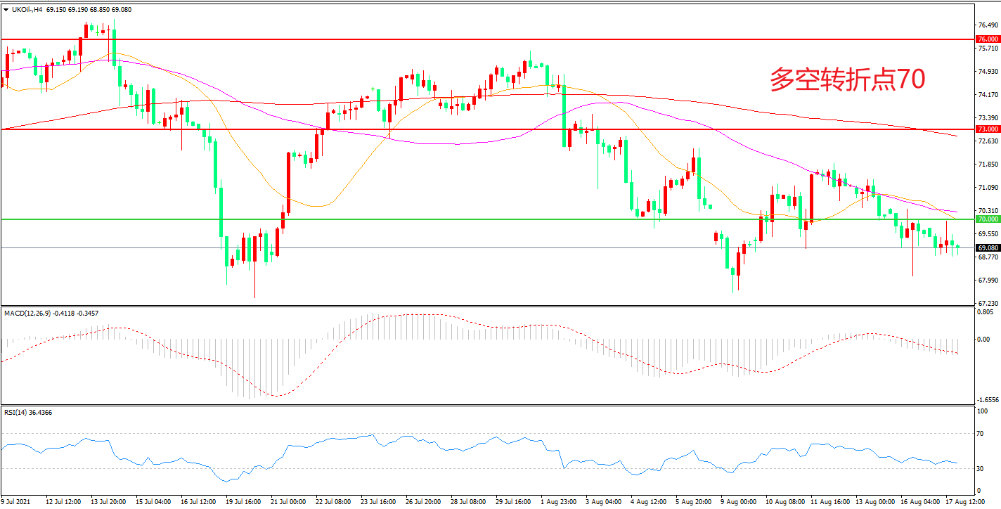 周二(8月17日),新冠病毒的新型变种在世界范围内激增加剧了人们对市场燃料需求的担忧,布伦特原油延续低位震荡,收报69.08美元/桶。随着上方压力逐渐增大,短期多空博弈有所加剧。周三(8月18日)凌晨,根据美国石油协会公布数据显示,当周API原油库存表现差强人意,如果晚间EIA表现不能提振市场,油价可能会迎来新一轮的下行。