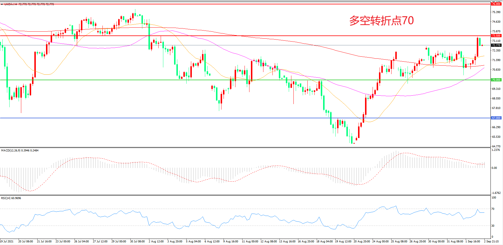 多空转折点:70.00