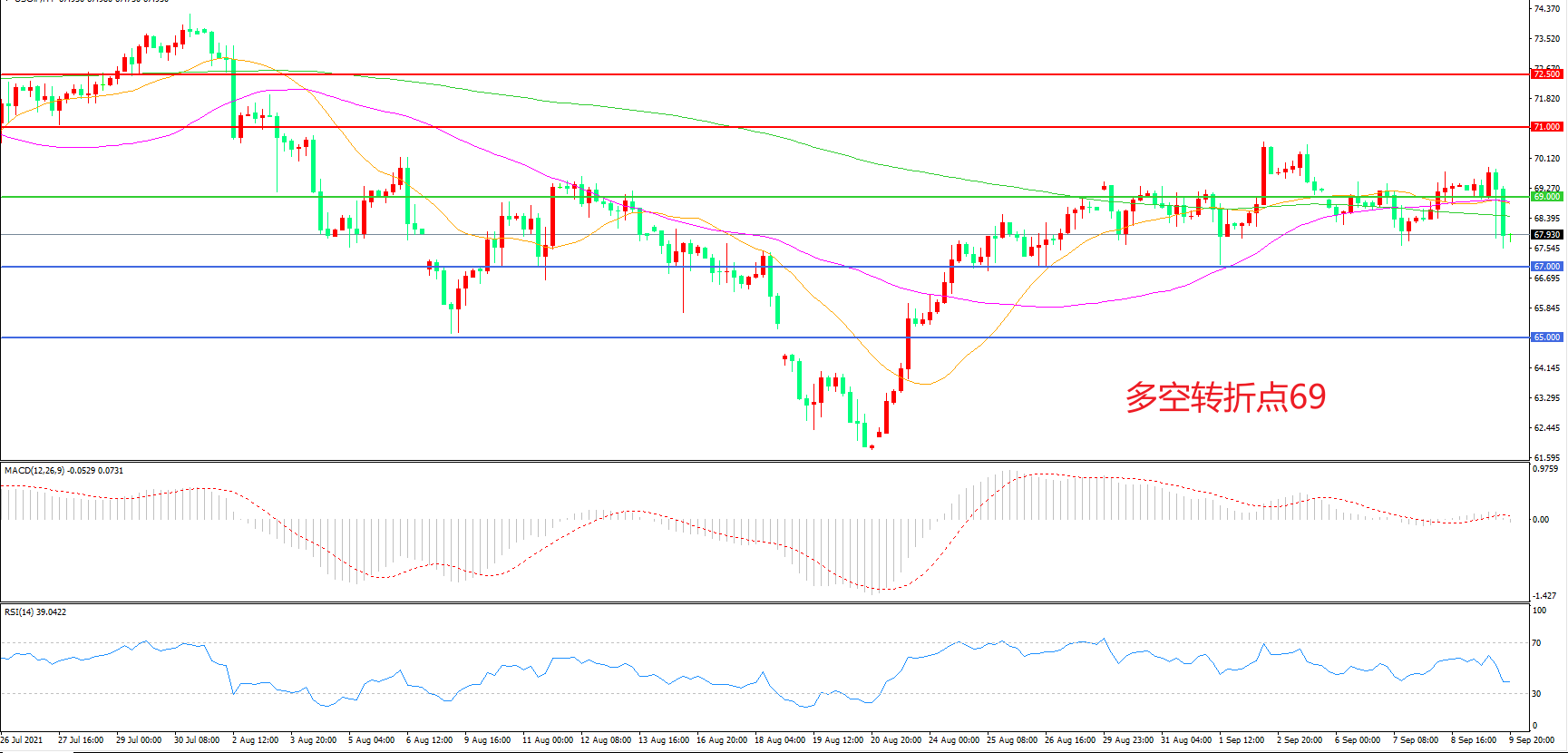 周四(9月9日),原油市场风云突变,中国官方突然宣布将抛售战略储备原油以缓解国内某些炼厂用油紧张的局面,这就意味着作为全球原油需求增量发动机的中国,在四季度将会减缓原油进口,美国WTI原油闻讯大跌,收报67.86美元/桶。就目前来看,原油市场重新回到悲观的格局当中,市场下行的风险正在逐步累积,日内弱势震荡的迹象将更加明显。