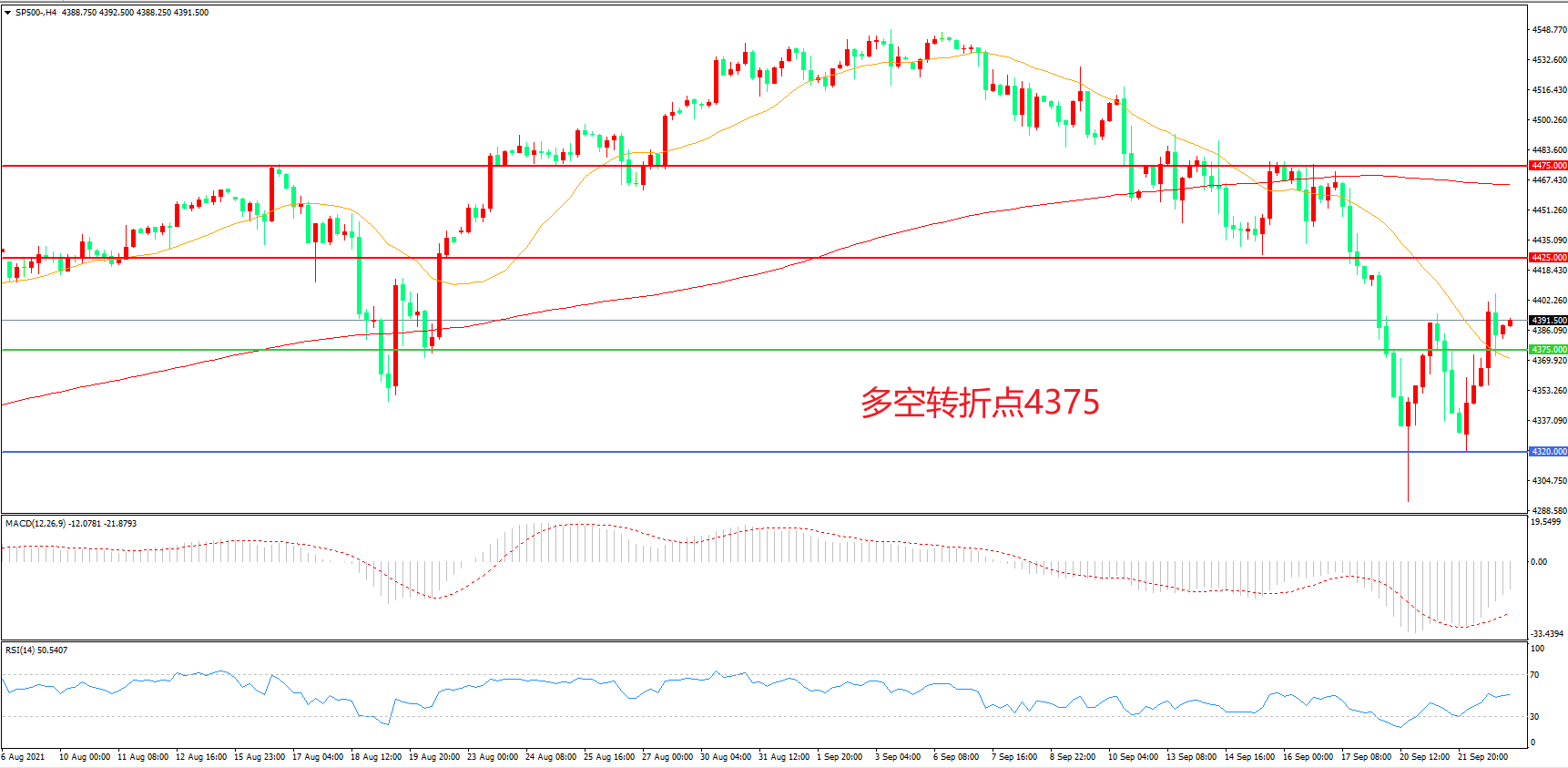 多空转折点:4375.00
