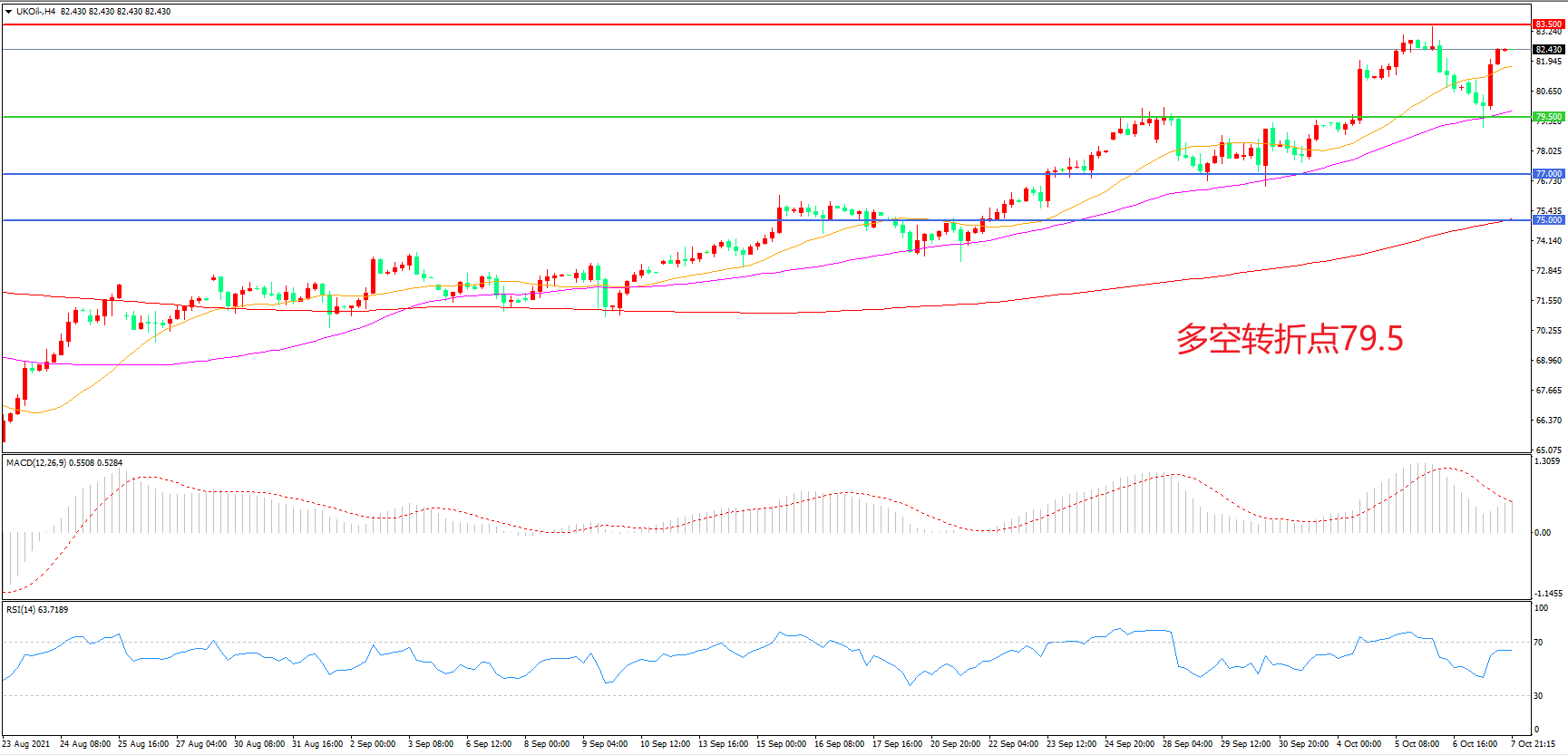 交易策略:在79.50之上看涨,目标83.50                 86.00