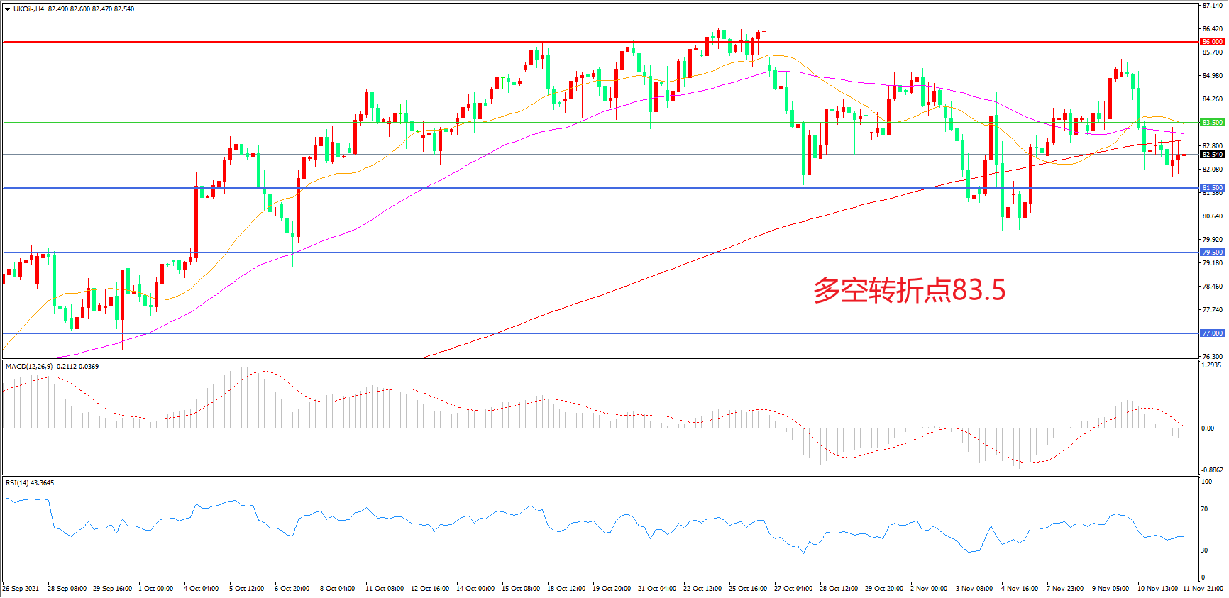交易策略:在83.50之下看跌,目标81.50                 79.50