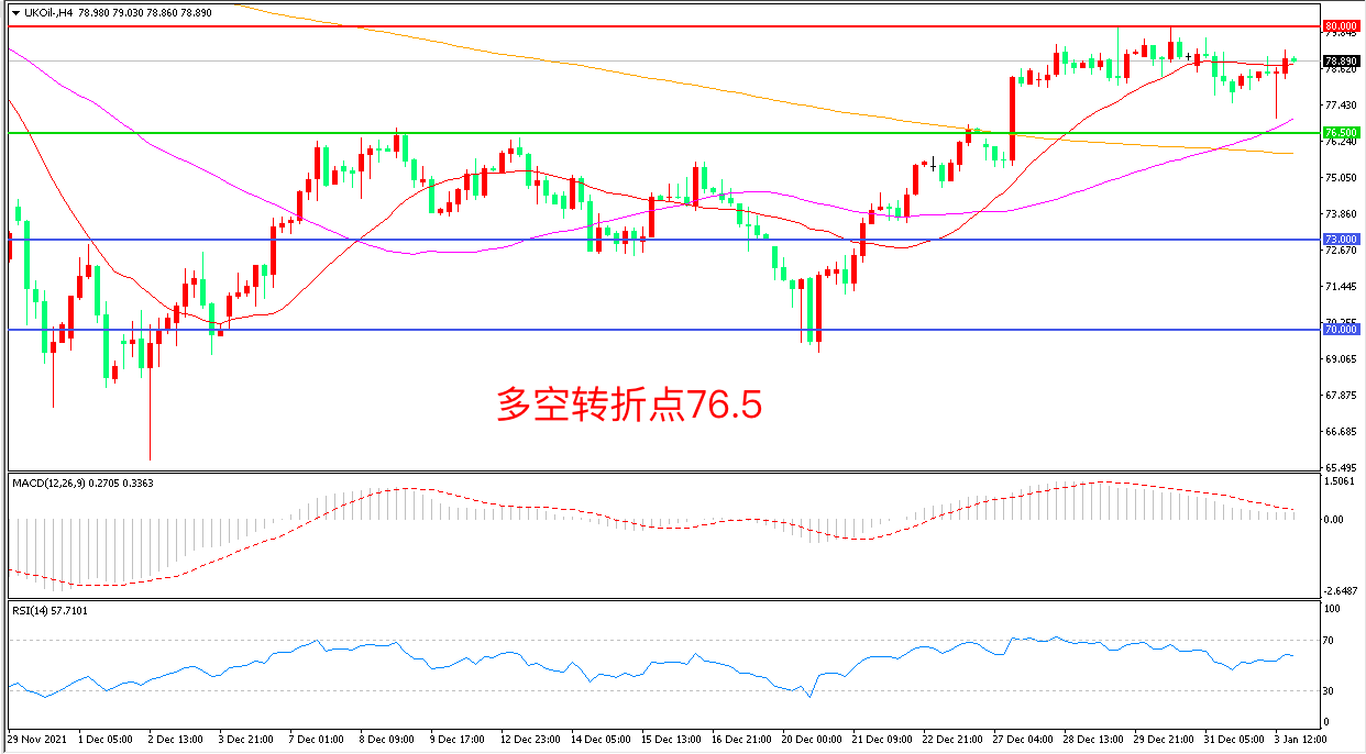 交易策略:在76.50之上看涨,目标80. 00 83.00