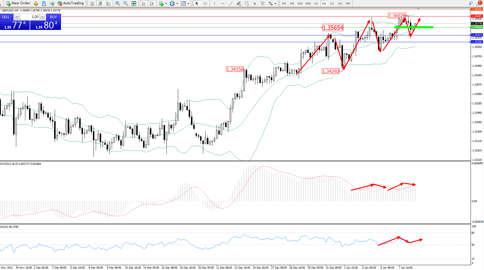 交易策略:1.35654上方看涨,目标1.36001、1.36215