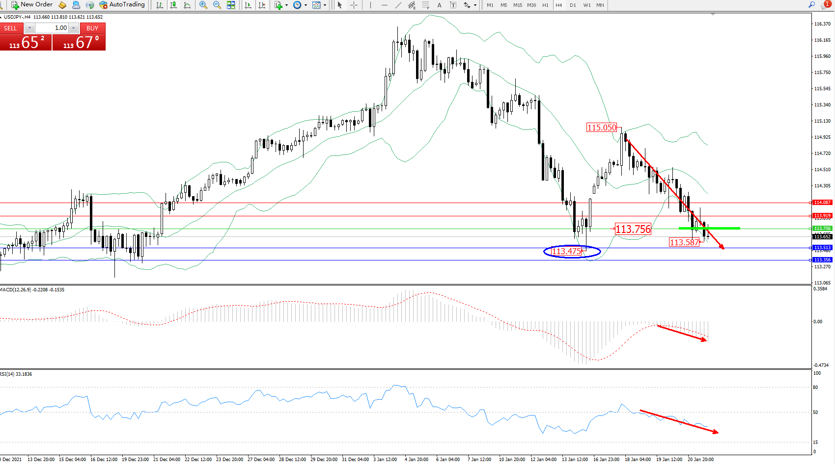 交易策略:113.756下方看跌,目标113.513、113.356