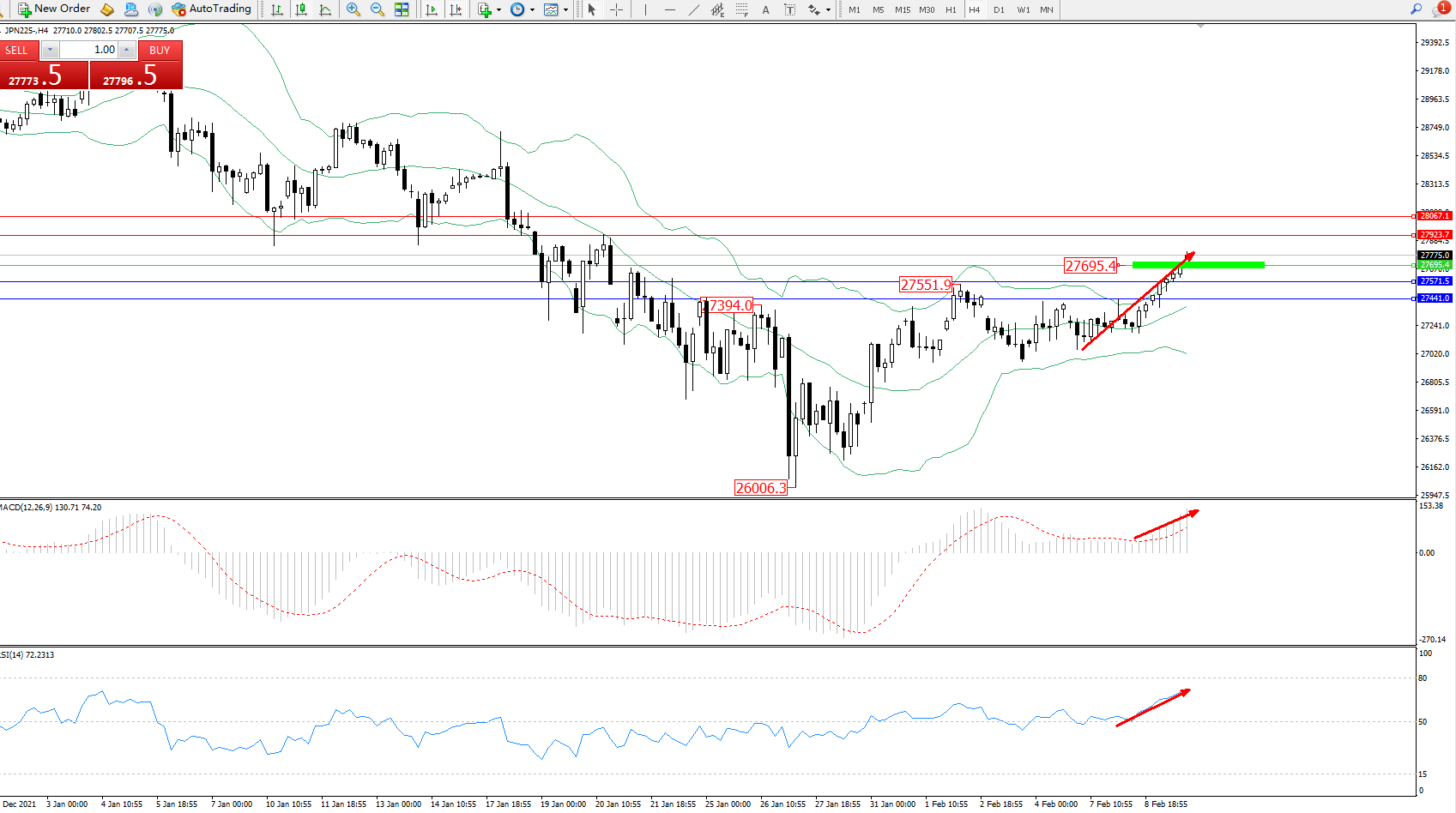 日经225指数2月9日(周三)收盘上涨300.48点,涨幅1.10%,报27585.00点。日本政府大举发放现金导致存款激增,正令一些日本银行感到紧张,这使央行缓解负利率政策副作用的努力变得复杂。银行业龙头三菱日联银在日本央行的存款上个月被收取负利率,为2016年采用该政策以来的首次。由于日本政府计划再花费2万亿日元为育有子女的家庭发放现金,存款可能进一步增加。三菱日联的情况凸显出,超大型银行多年来为避免支付利息所做的努力,可能已经达到极限。
