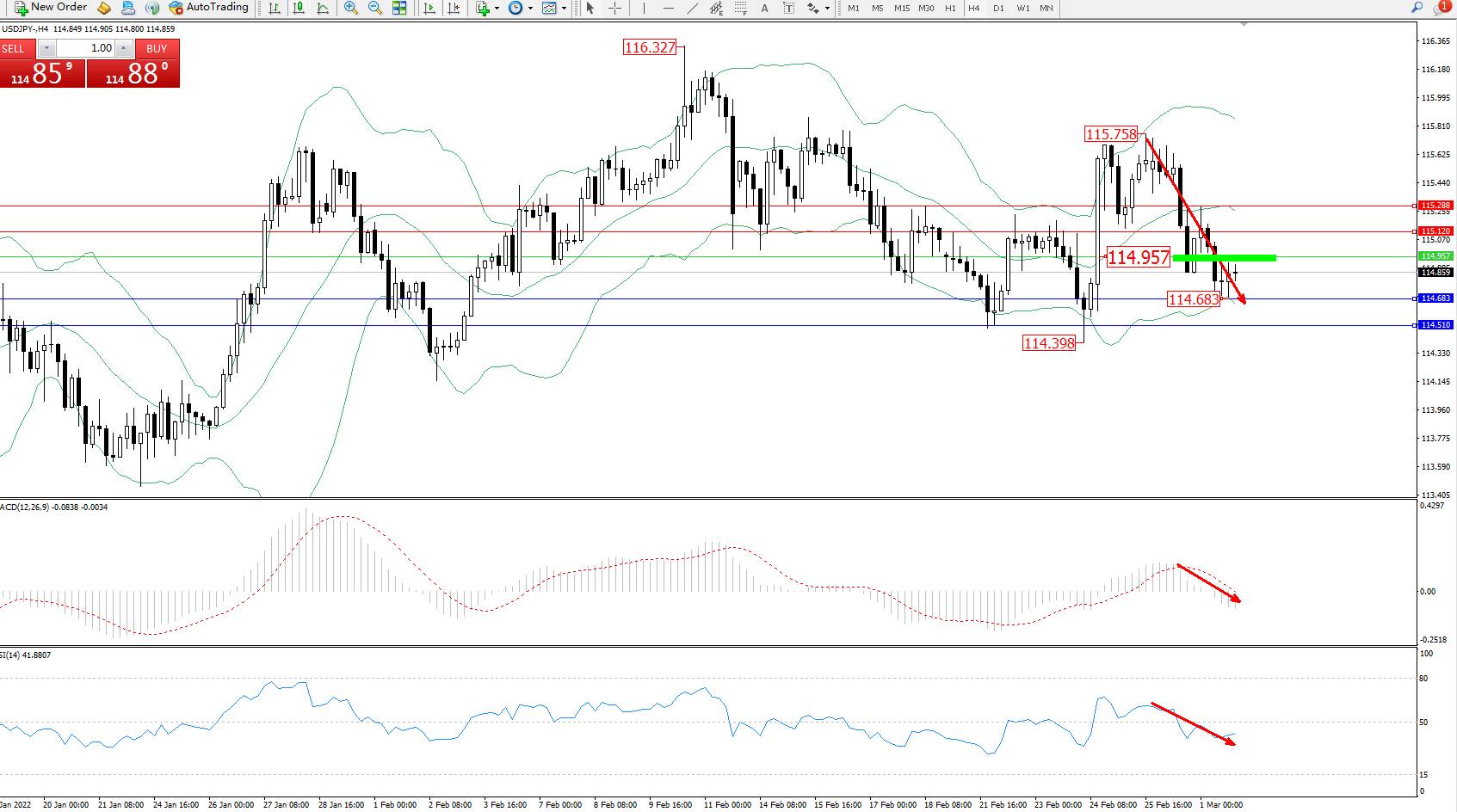 交易策略:114.957下方看跌,目标114.683、114.510