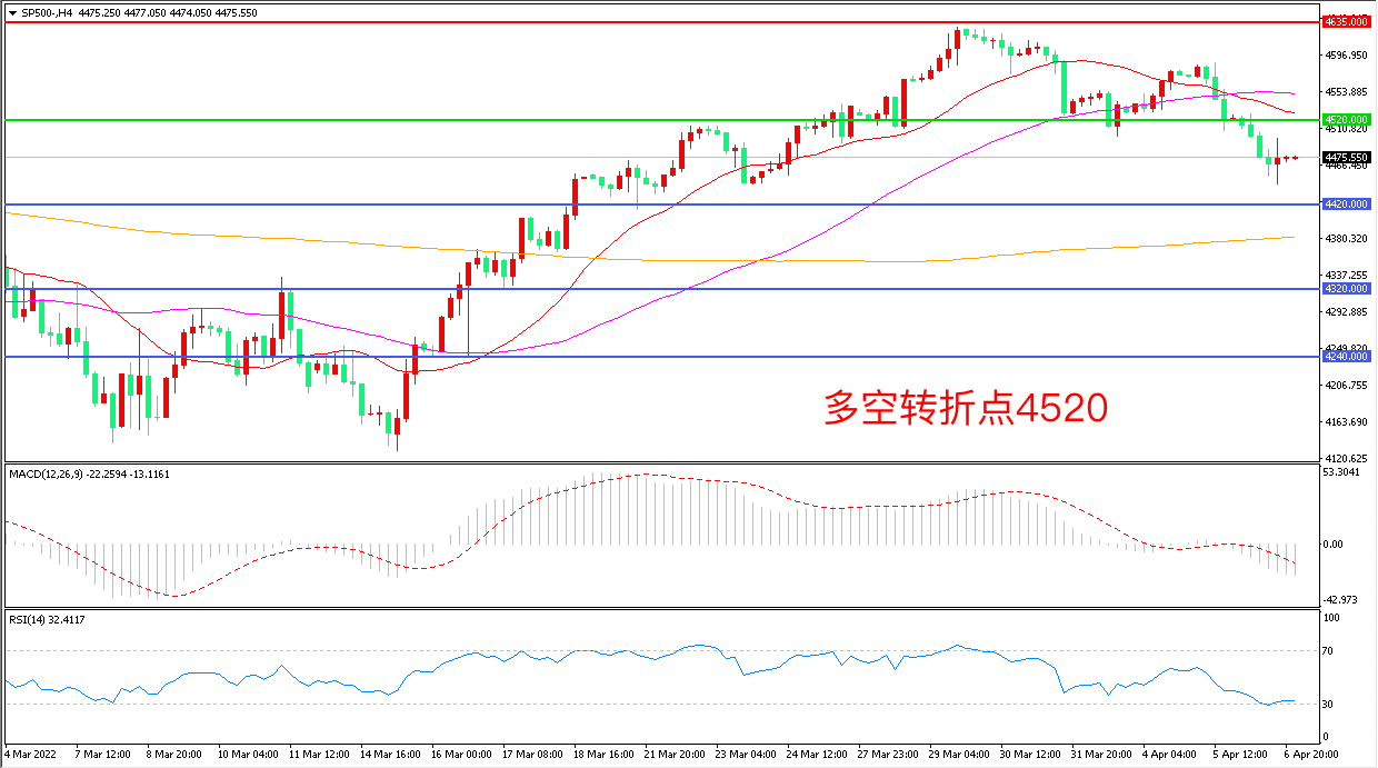 交易策略:在4520.00之下看跌,目标4420.00 4320.00