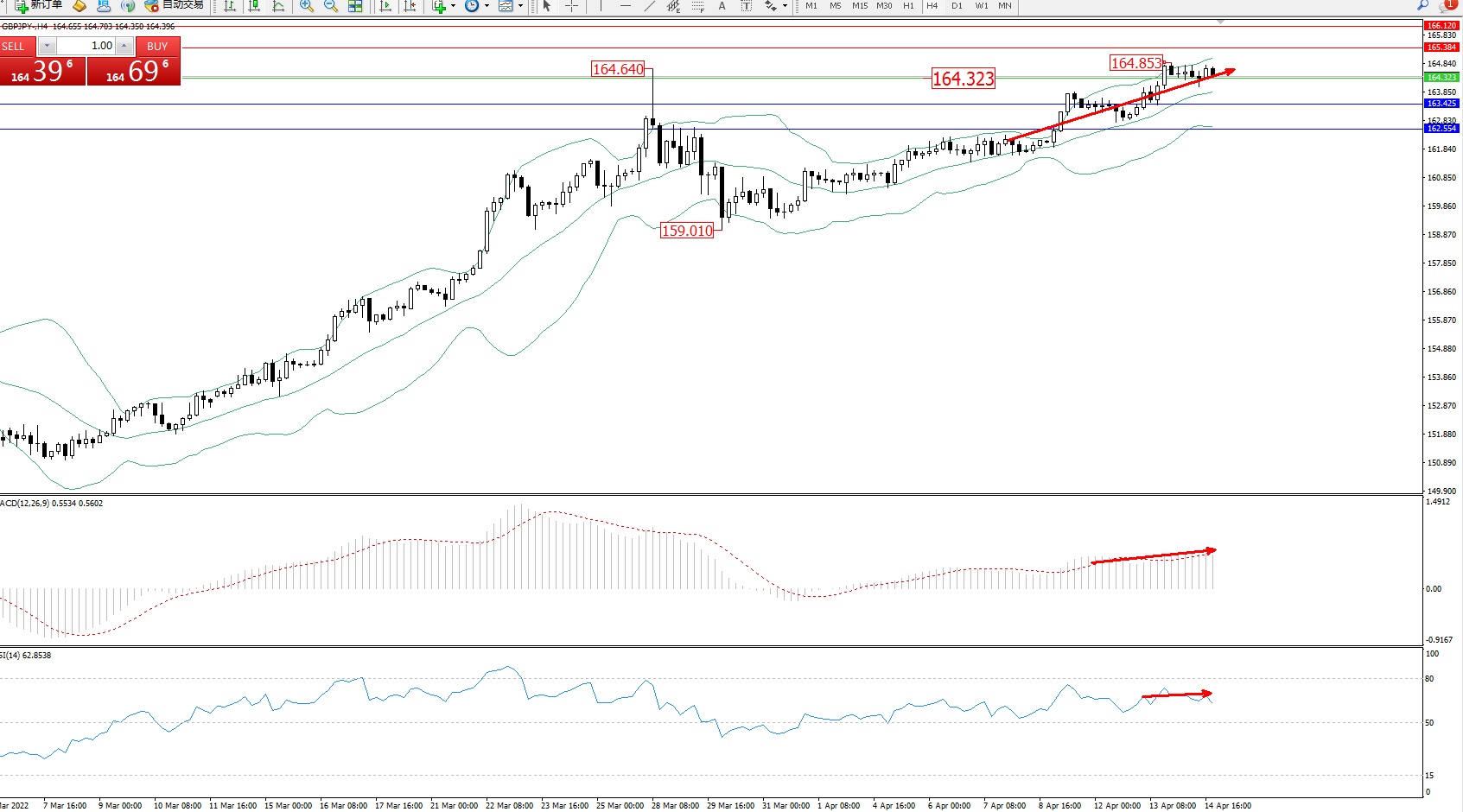 交易策略:164.323上方看涨,目标165.384166.120