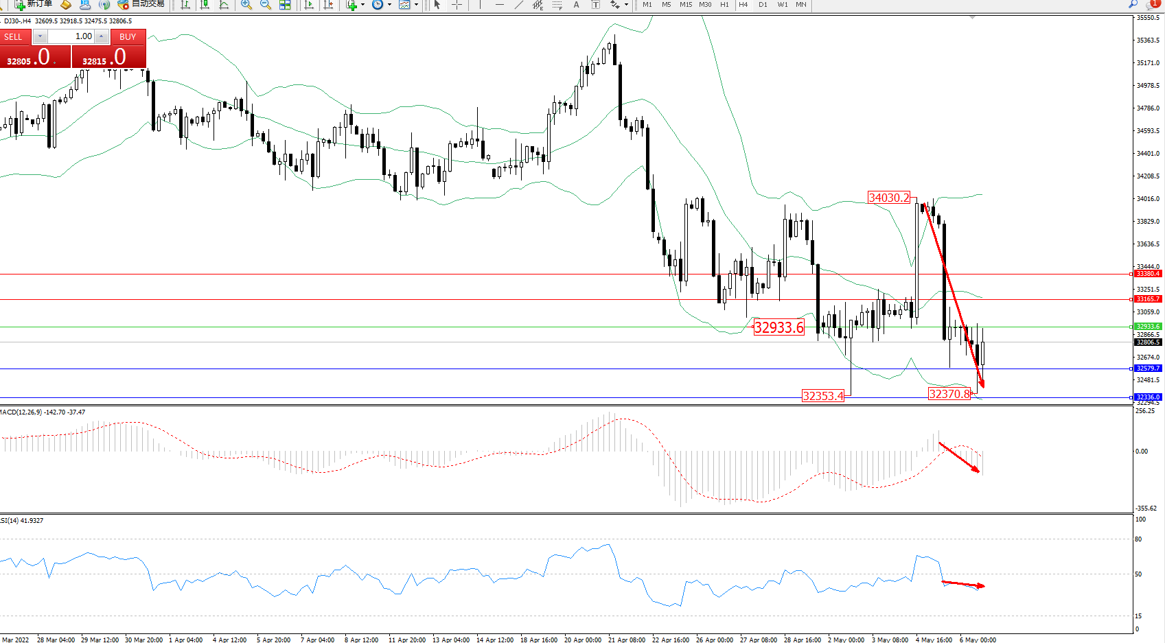 道琼斯指数5月6日(周五)收盘下跌97.15点,跌幅0.29%,报32900.82点;美股今日走势反覆,道指初步收跌,股市连续第五周下跌,颓势持续时间之久创下了11年最长纪录,因周五强劲的就业报告给对高通胀挥之不去的担忧火上浇油。股市似乎一直在坐过山车,因为投资者继续在辩论加息下的强劲经济迹象,而升息仍然是高估值公司的拖累。 当周美股在最初连涨三天后出现大幅逆转,短短两天的跌幅就超过了此前录得的涨幅。这也是今年股市整体低迷的延续。投资者担心美联储未来几个月迅速加息会导致美国经济陷入衰退。