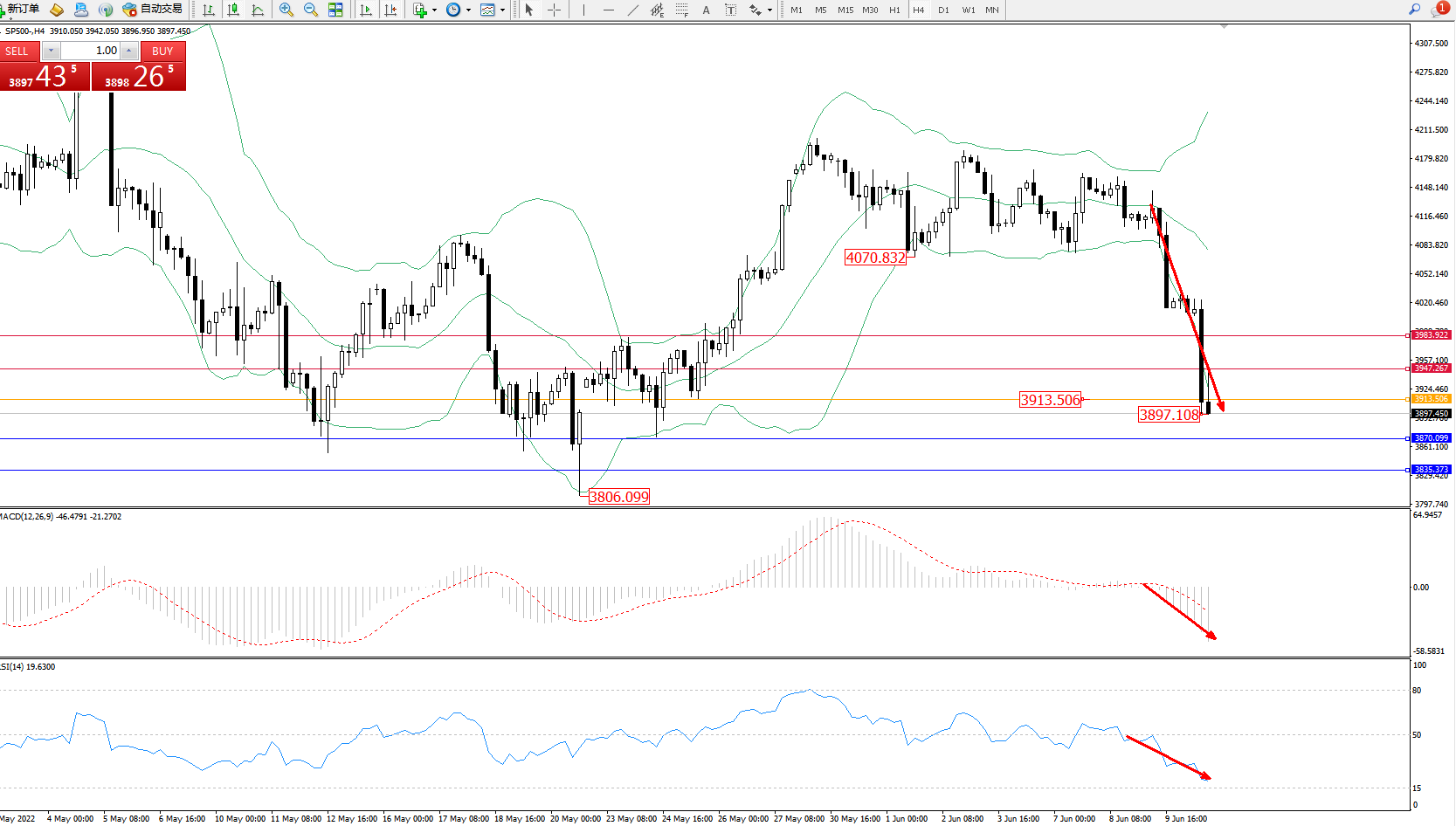 标普500指数6月10日(周五)收盘下跌116.95点,跌幅2.91%,报3900.86点;美国劳工部周五公布的数据显示,5月份CPI同比上涨8.6%,随着美国通胀率意外触及40年新高,且消费者信心跌至纪录新低。