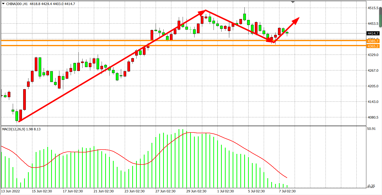 周四(7月7日)A股开盘后稳健上升,新能源概念、汽车、赛道股飙涨,两市合计成交10530亿元,沪深300收涨0.44%。随着A股短线调整暂缓,7月份增量政策有望陆续出台,叠加基本面数据持续向好,经济预期上修,投资者对风险担忧明显回落,A股短期仍然存在向上惯性行情。