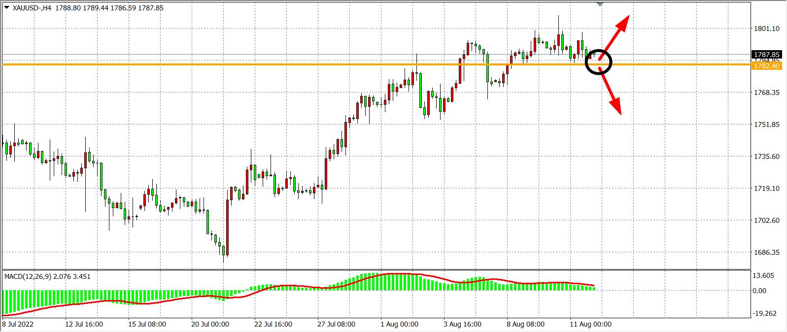 交易策略:在1782.00之上看涨,目标1800.00           1820.00