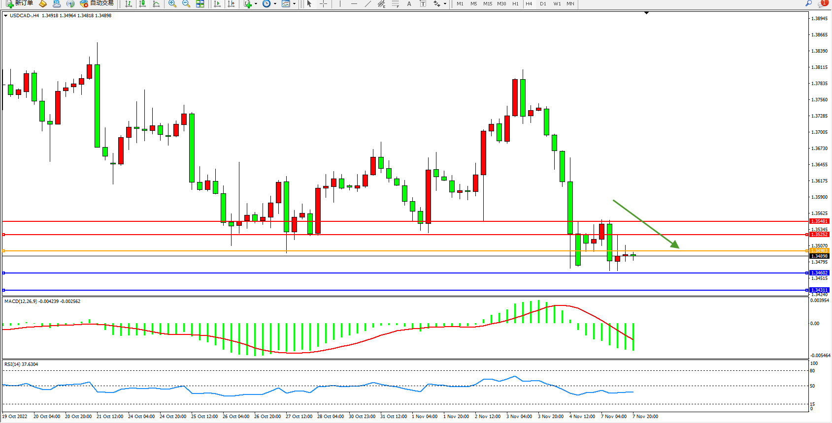 交易策略:1.34983下方看跌,目标1.34602、1.34311