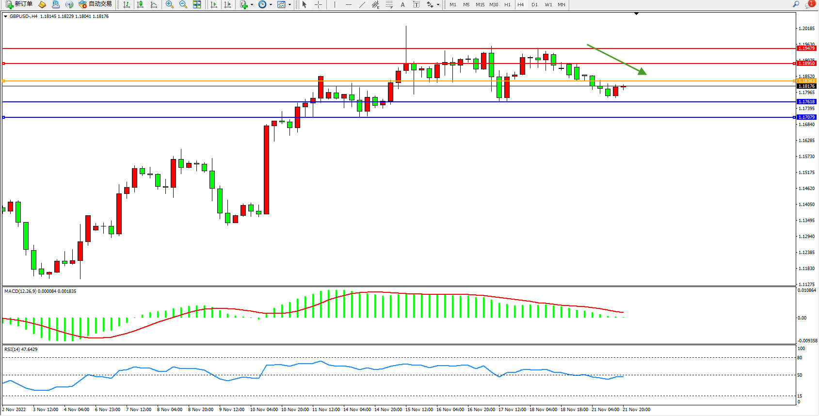 交易策略:1.18343下方看跌,目标1.17618、1.17079