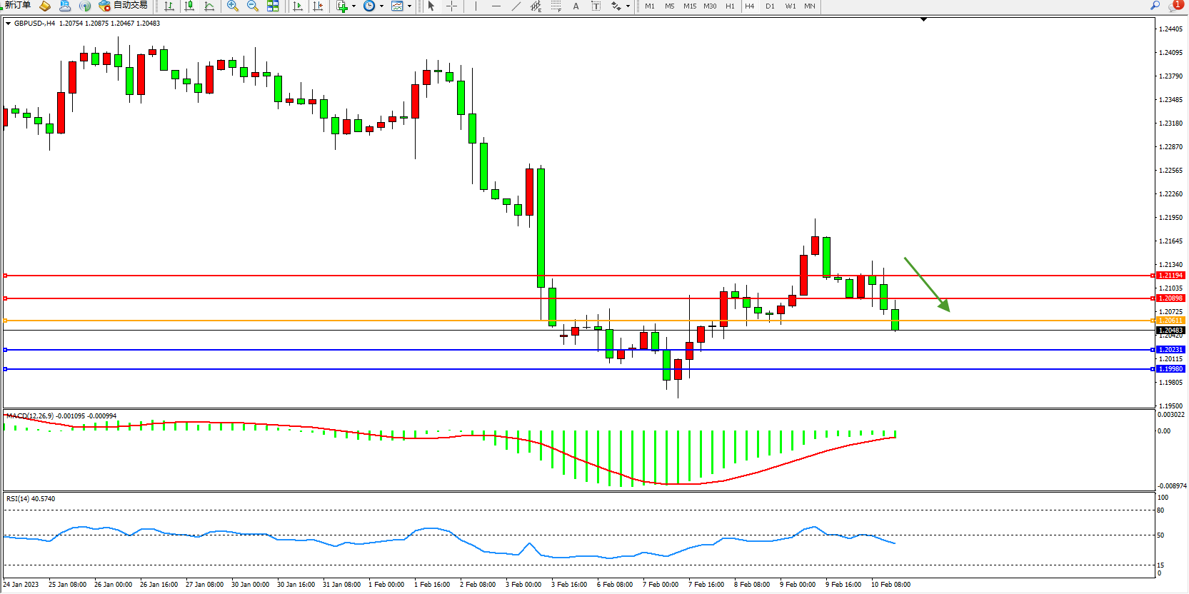 交易策略:1.20611下方看跌,目标1.20231、1.19980