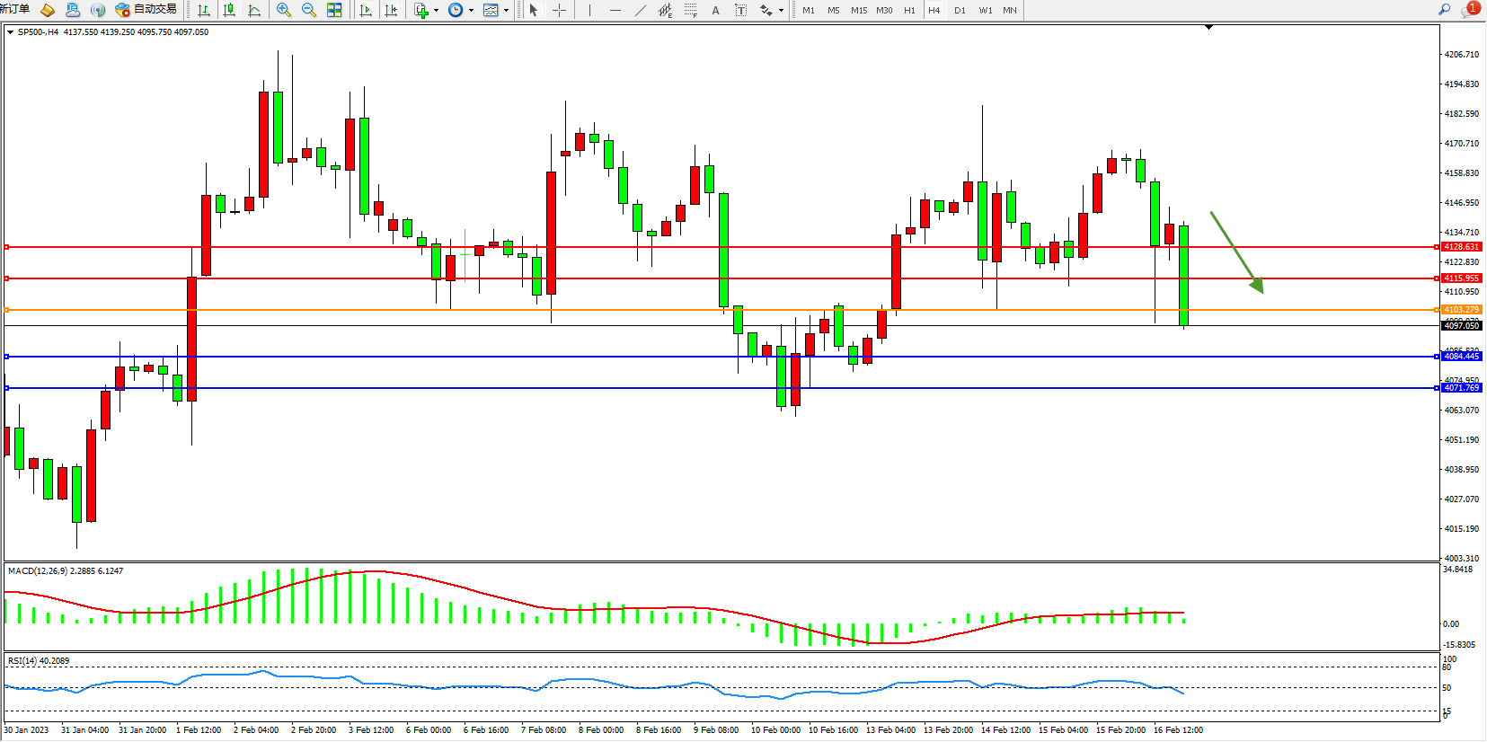 标普500指数2月16日(周四)收盘下跌56.90点,跌幅1.37%,报4090.70点;美联储政策制定者的言辞趋于强硬,至少在基调上发生了翻天覆地的变化。货币市场预计美联储的目标利率将在7月份达到5.2%以上的峰值,上半年不会停止加息。