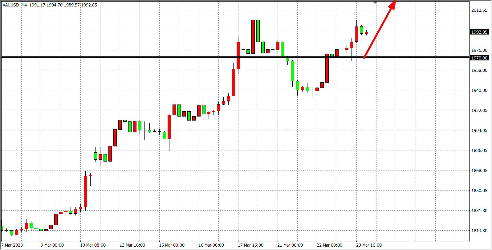周四(3月23日)美国财长耶伦改口表示“准备必要时再采取保护存款行动”,加上美国最新公布的初请失业金人数仍低于20万,显示出美国劳动力市场依然强劲,因此美元指数收复了自美联储加息以来的部分失地,而美债收益率因市场继续消化美联储鸽派预期而下降,现货黄金受到美联储鸽派预期和美债收益率下行的提振,盘中一度重回2000美元大关,收涨1.19%。当前环境继续对金价较为有利,后市上行空间仍值得展望。