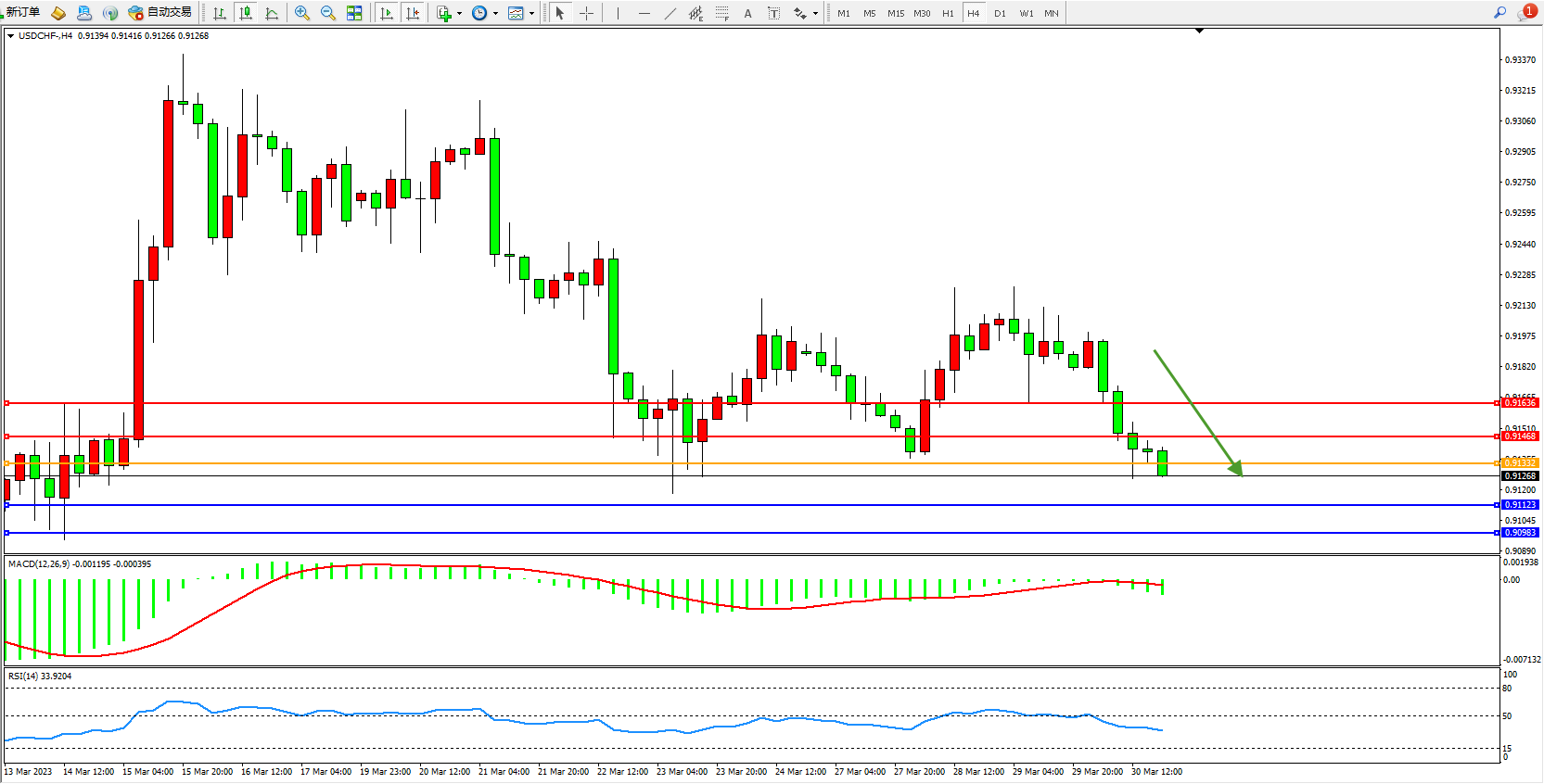交易策略:0.91332下方看跌,目标0.91123 0.90983