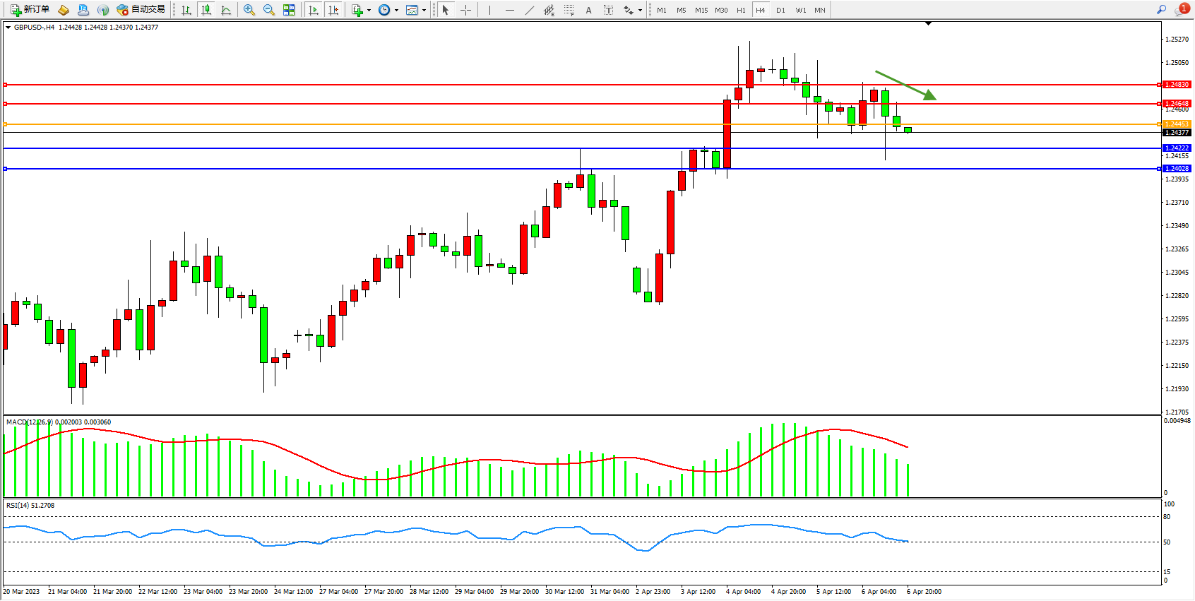 交易策略:1.24452下方看跌,目标1.24222 1.24028