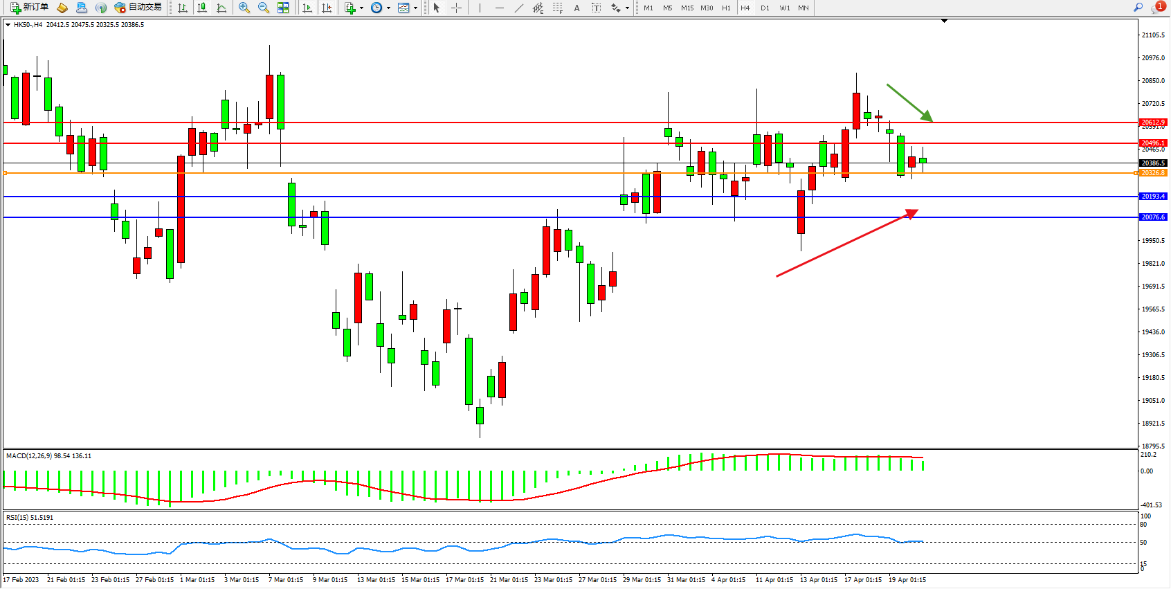 香港恒生指数4月20日(周四)收盘上涨29.21点,涨幅0.14%,报20396.97点;港股全天维持窄幅震荡行情,市场情绪总体趋于平稳。恒指、国指分别涨0.12%和0.09%,恒生科技指数小幅下跌0.09%,三者全天振幅在1%以内。大型科技股涨跌各异,美团涨3.5%,半导体股表现活跃,中芯国际续创阶段高价;高铁基建股崛起,中字头股表现抢眼,南下资金全日净流出25.22亿港元,大市成交额为1015亿港元。