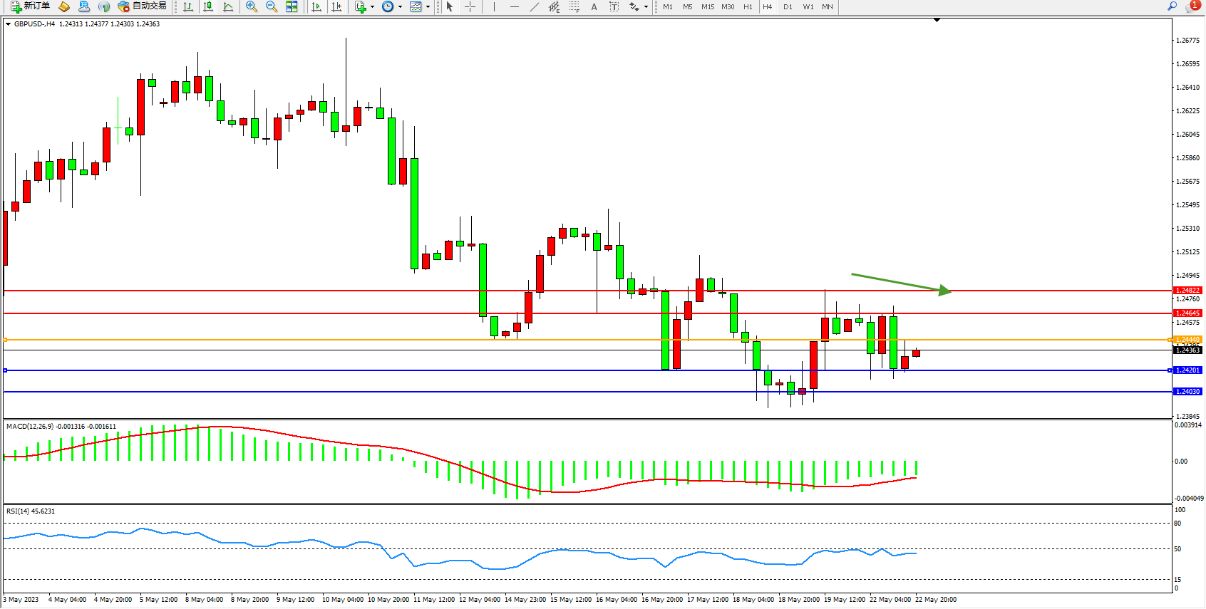 阻力位:1.24645 1.24822